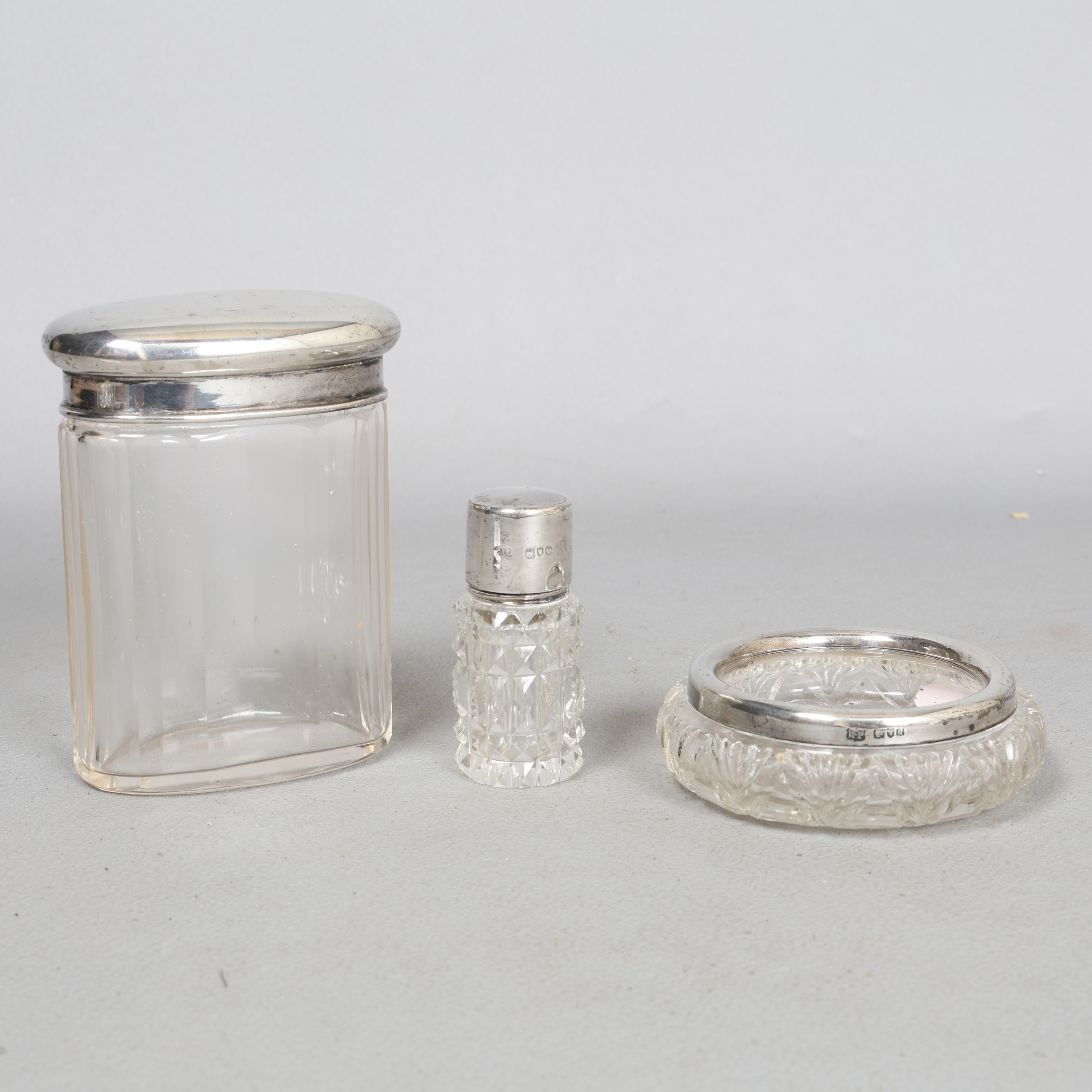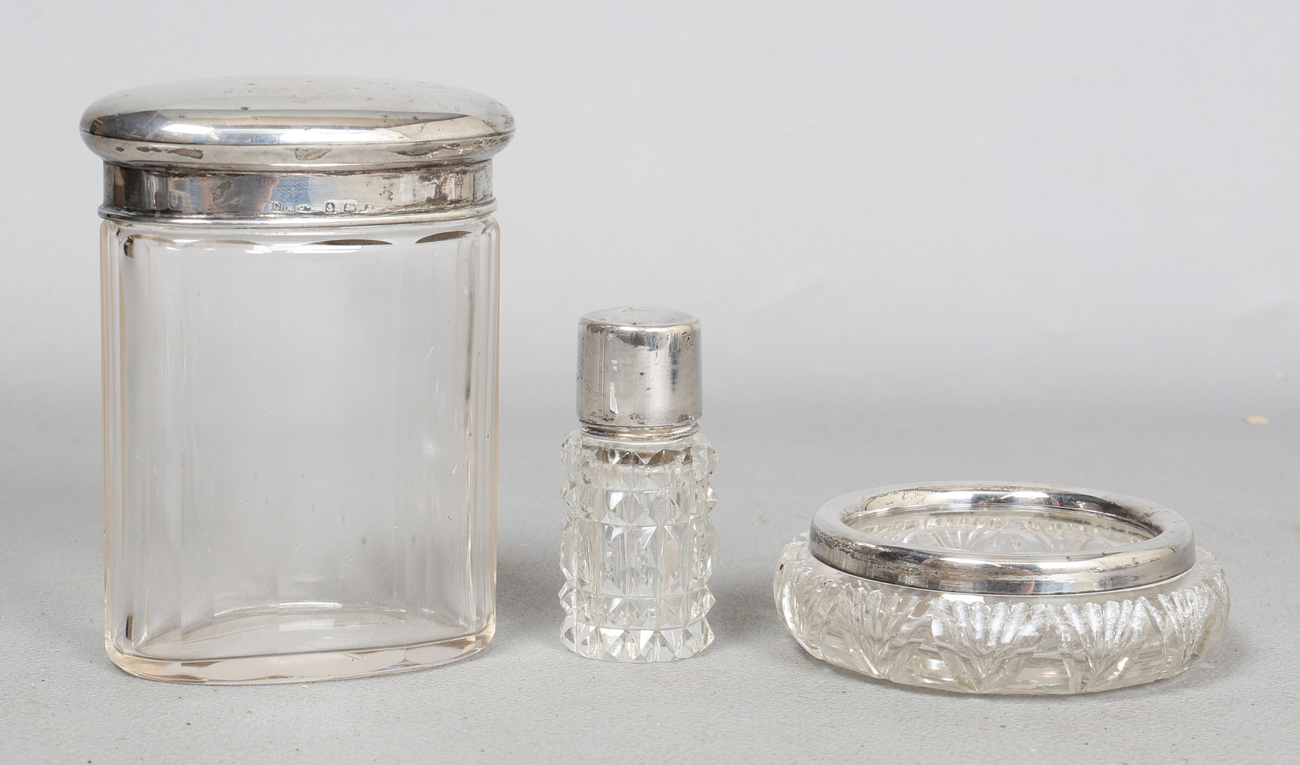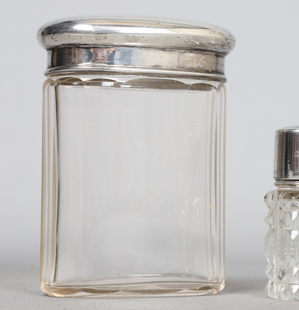 4407903. THREE SILVER MOUNTED DRESSING TABLE POTS (3).