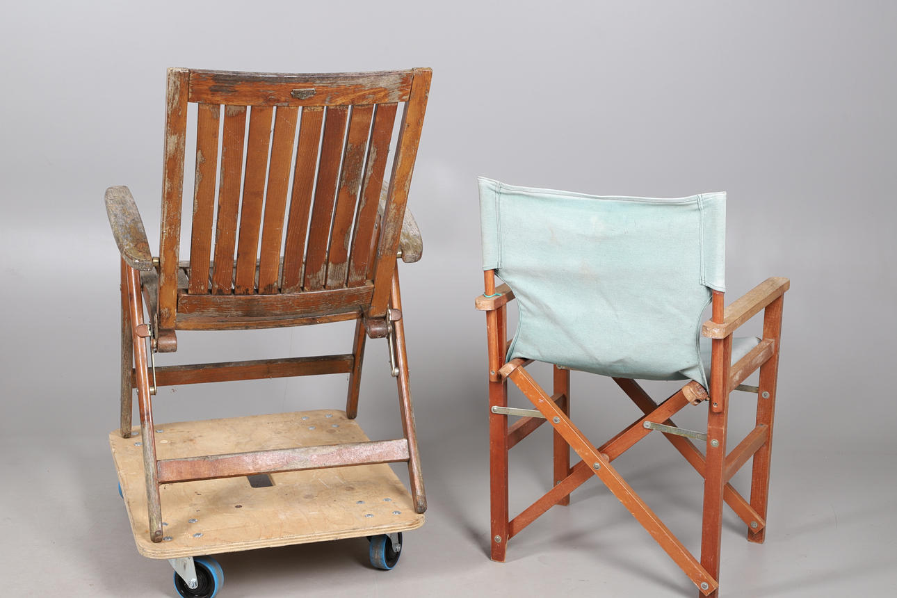 Height 99cm, can be folded for easier transport. Together with a folding directors chair.
