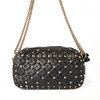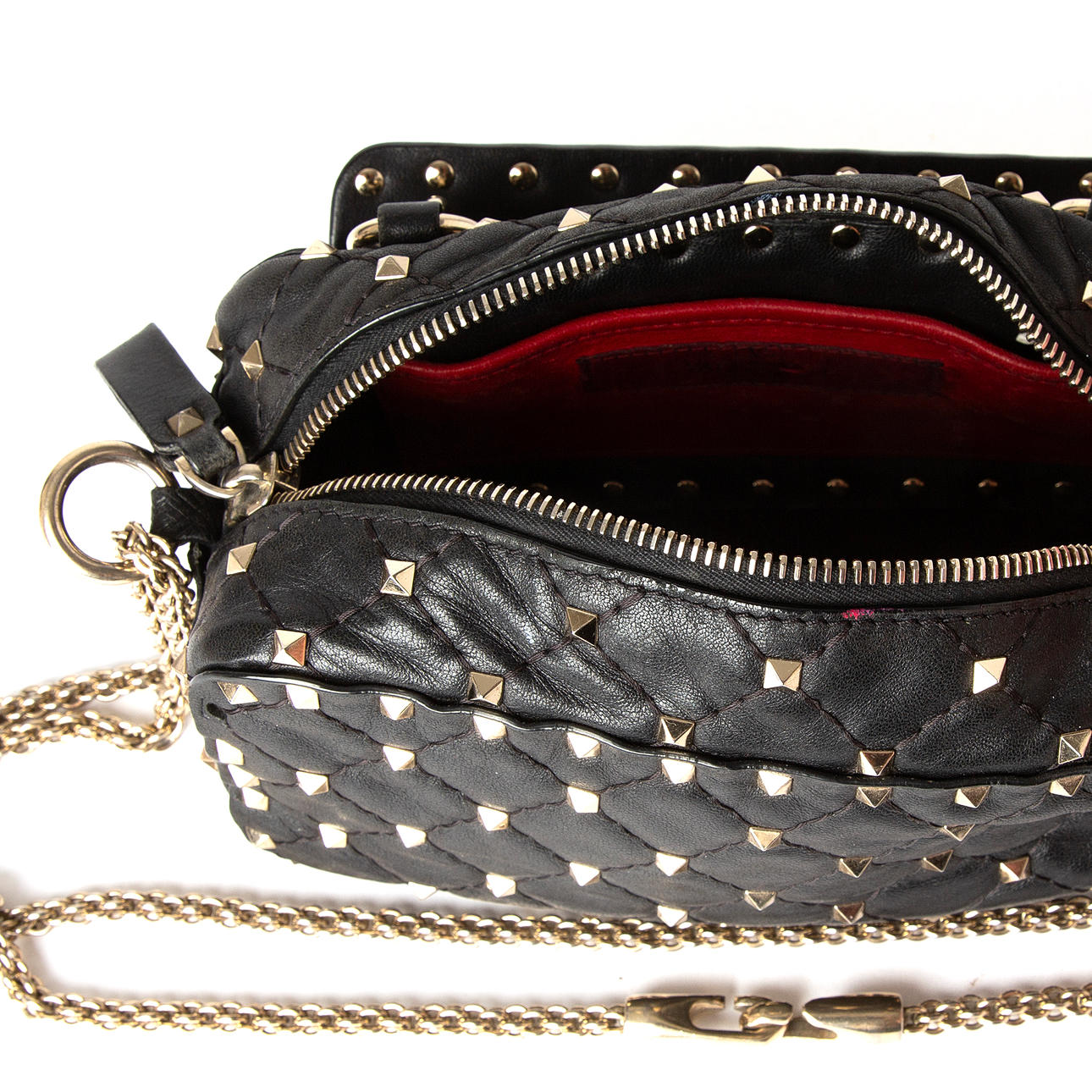 With silver metal rivets. From the Rockstud series. Carried in handles alternatively with single or double shoulder chain. Inside with a larger compartment and a smaller pocket.