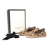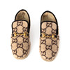 With monogram pattern and Gucci's classic brass bite. Rubber outsole. Made in Italy.
