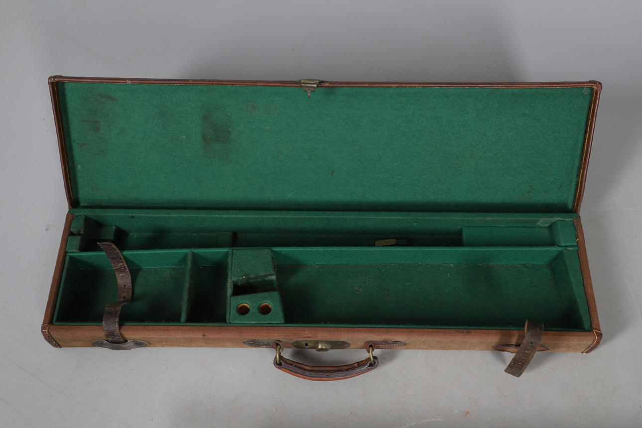4408375. TWO VINTAGE LEATHER & CANVAS SHOT GUN CASES.