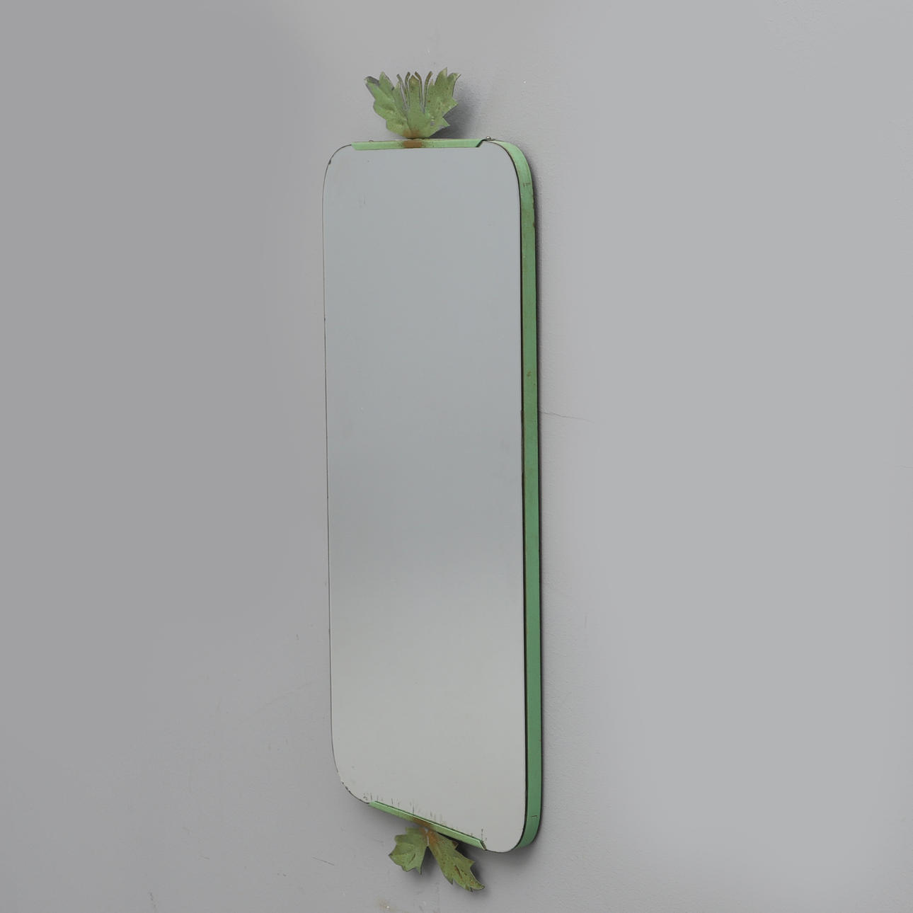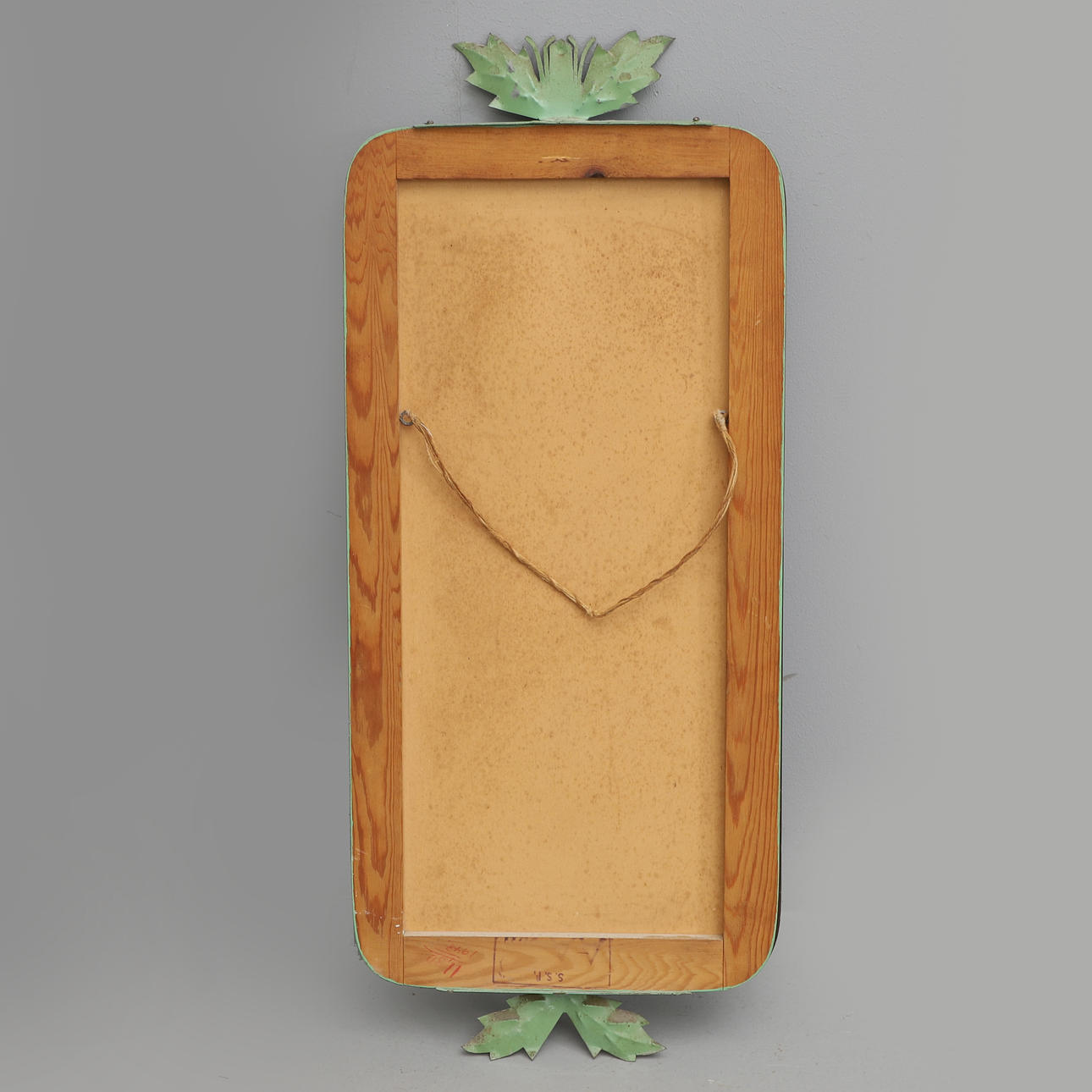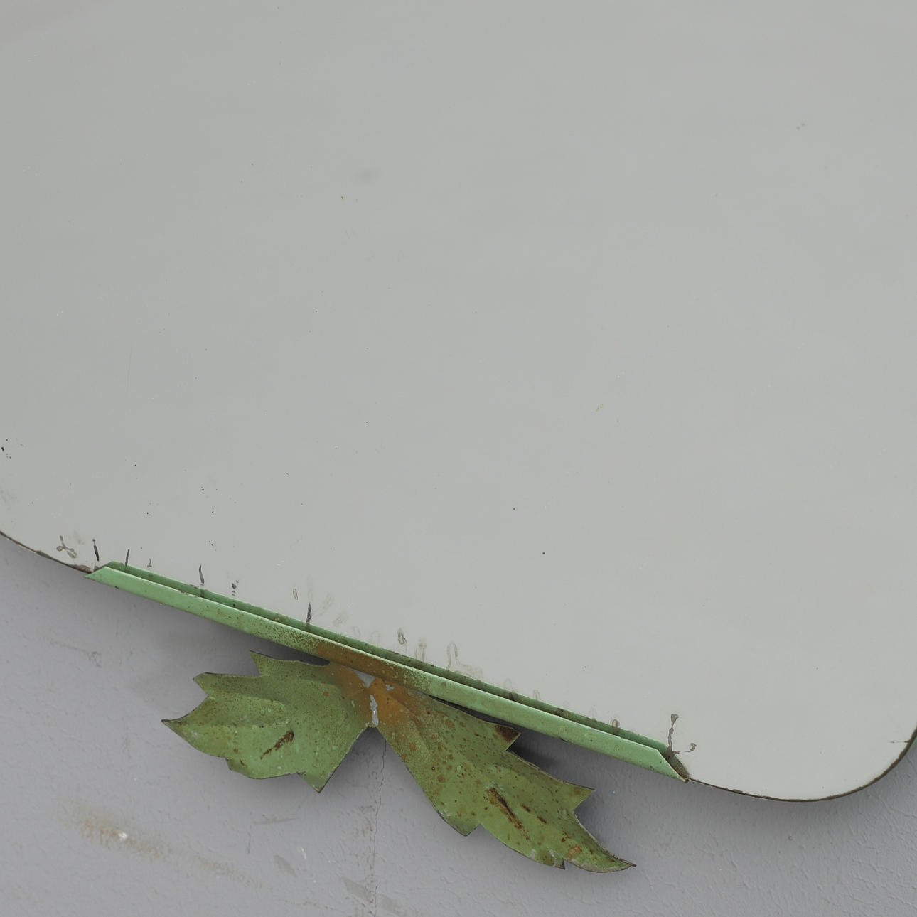 Green lacquered wooden frame. Decor of stylized leaves in lacquered metal. Marked S.S.F. AA qualifiers.. Height approx. 70, width 30 cm.