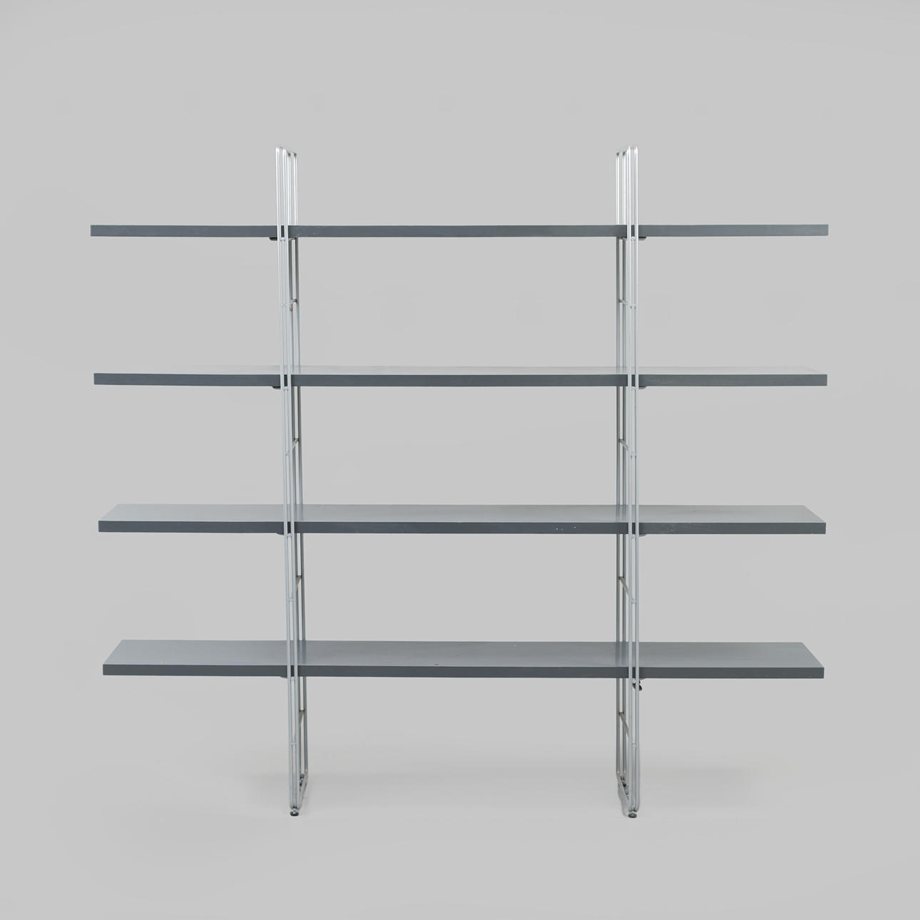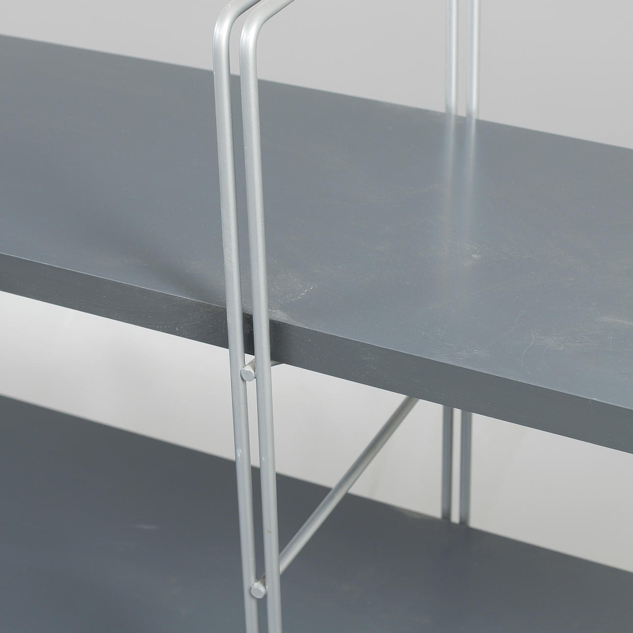 Metal frame. Grey-lacquered shelves. Length 170, width 33, height 160.