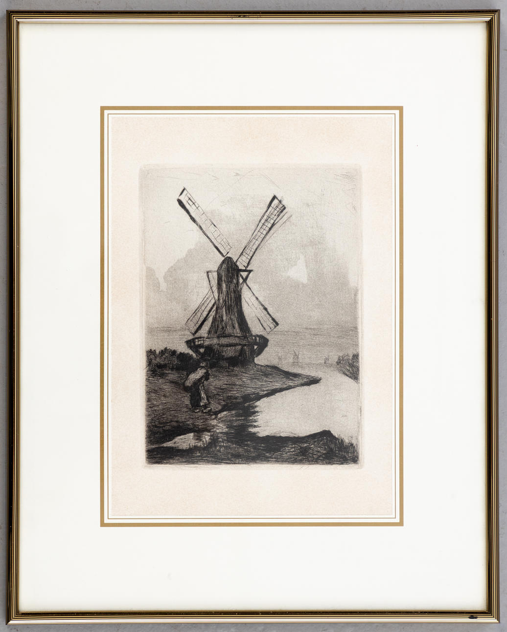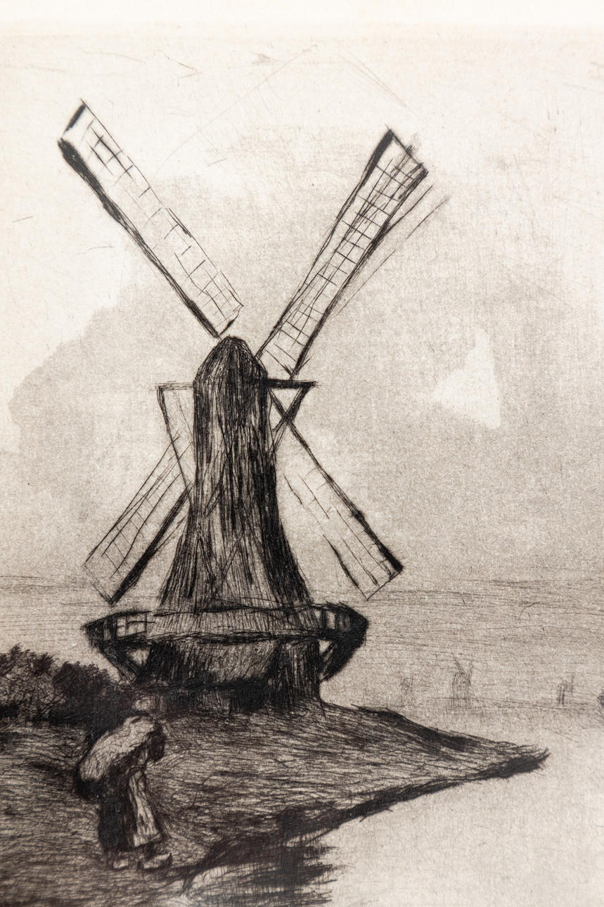 Lesser Ury (1861-1931), Dutch windmill, etching, 1919, ca. 17.5 x 12.5 cm, framed behind passe-partout and glass, with frame ca. 35 x 28 cm.