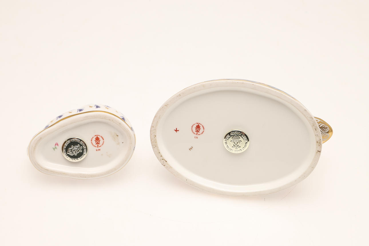 White swan upon nest, with silver stopper, date code for 2004, unboxed, 14cm wide, and Resting Rabbit with silver stopper, date code for 1996.