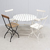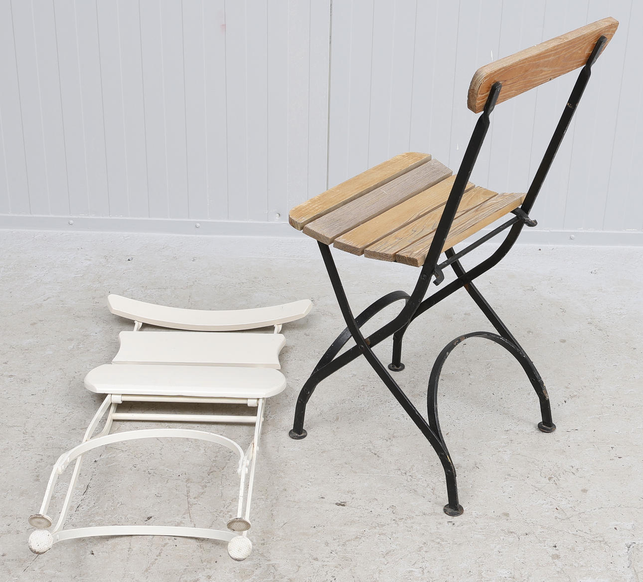 4 garden chairs, so called brewery chairs, back height approx. 84 cm, seat height approx. 48 cm, width approx. 42 cm.