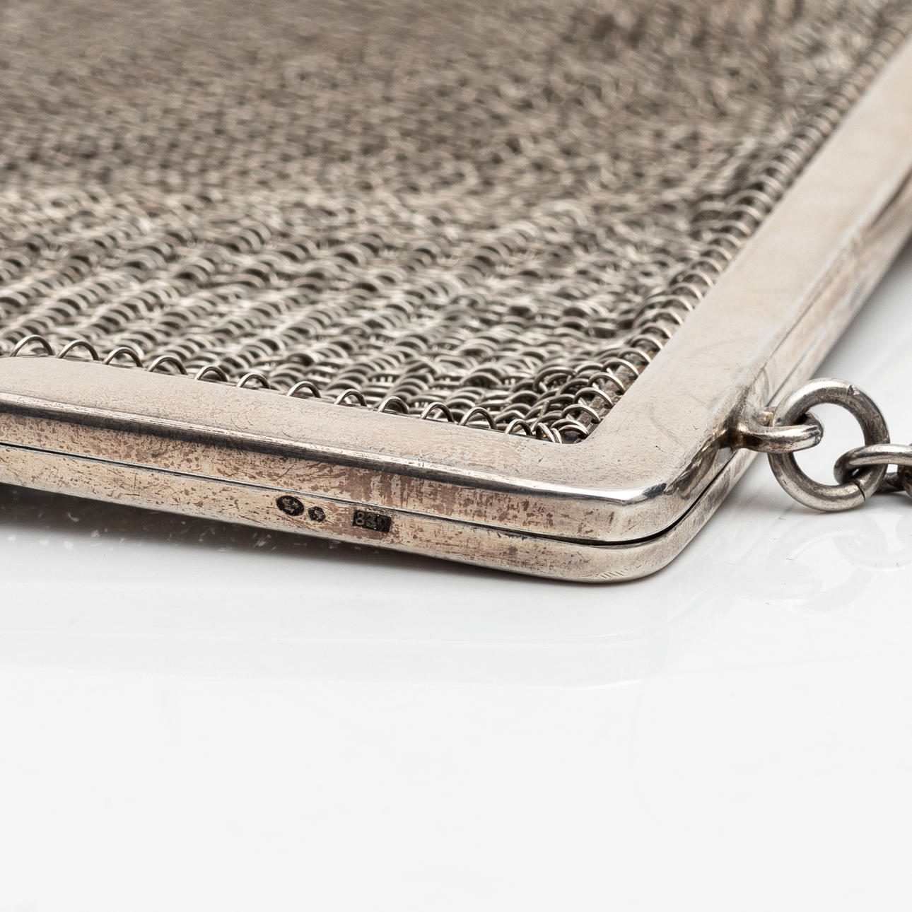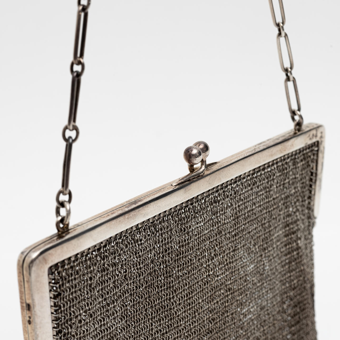 4409997. EVENING BAG, silver, Swedish import stamps.