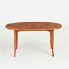 CARL MALMSTEN. Coffee table, “Oval”, mahogany, with tile marking.