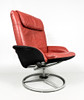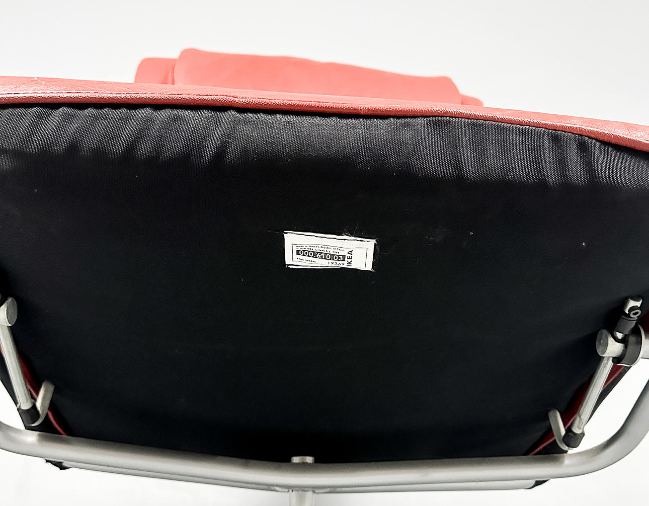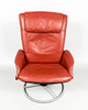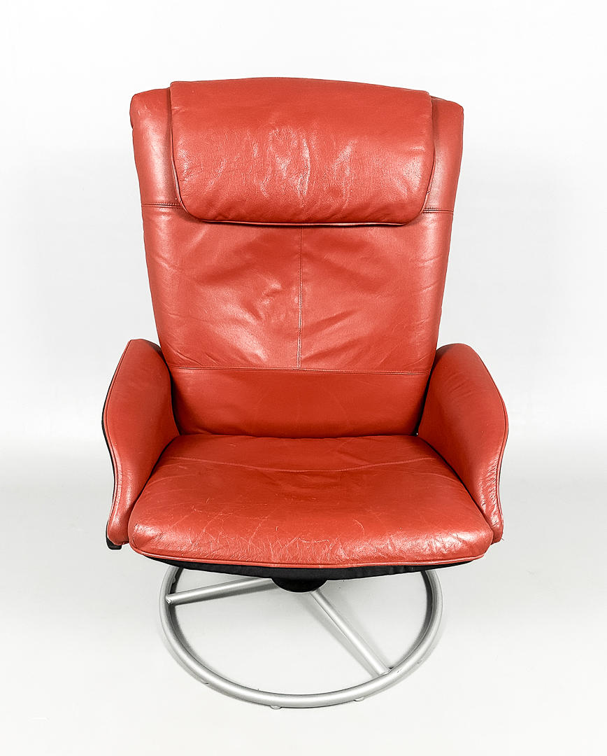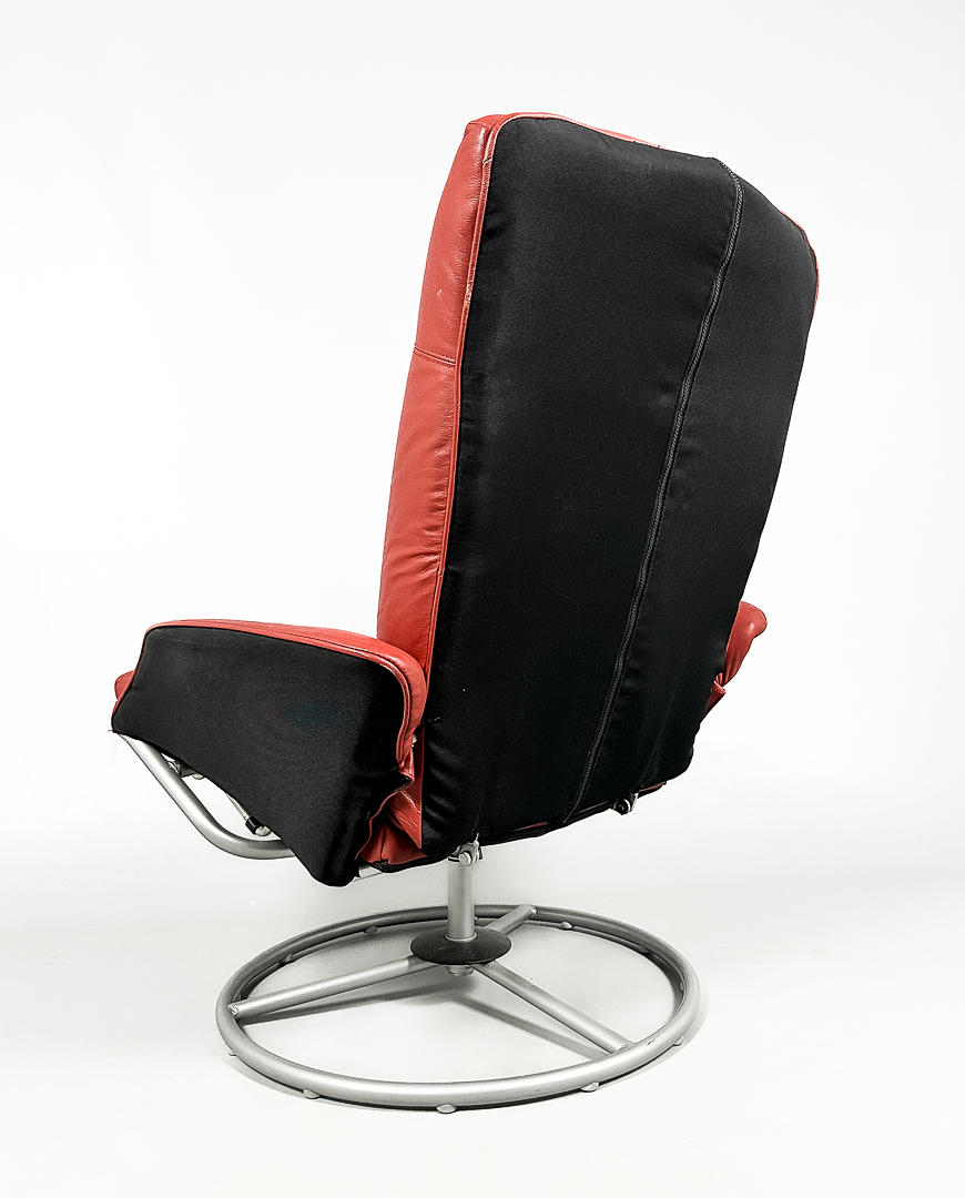 Armchair in red leather and black fabric Height approx. 94 cm, width approx. 70 cm, seat height approx. 40 cm.