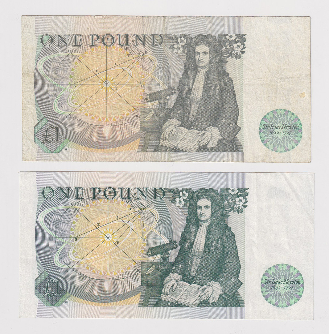 4410319. TWO ONE POUND BANK NOTES INCLUDING AN ERROR BANKNOTE (2).