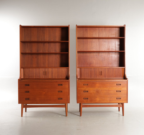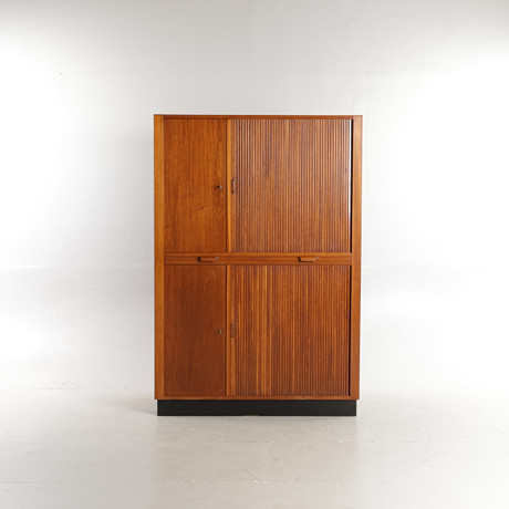 4410399. KURT OLSEN. Walnut sideboard with two jalousie lids and upper shelf of stained beech, Andersen & Bohm, Denmark, mid 1900's.