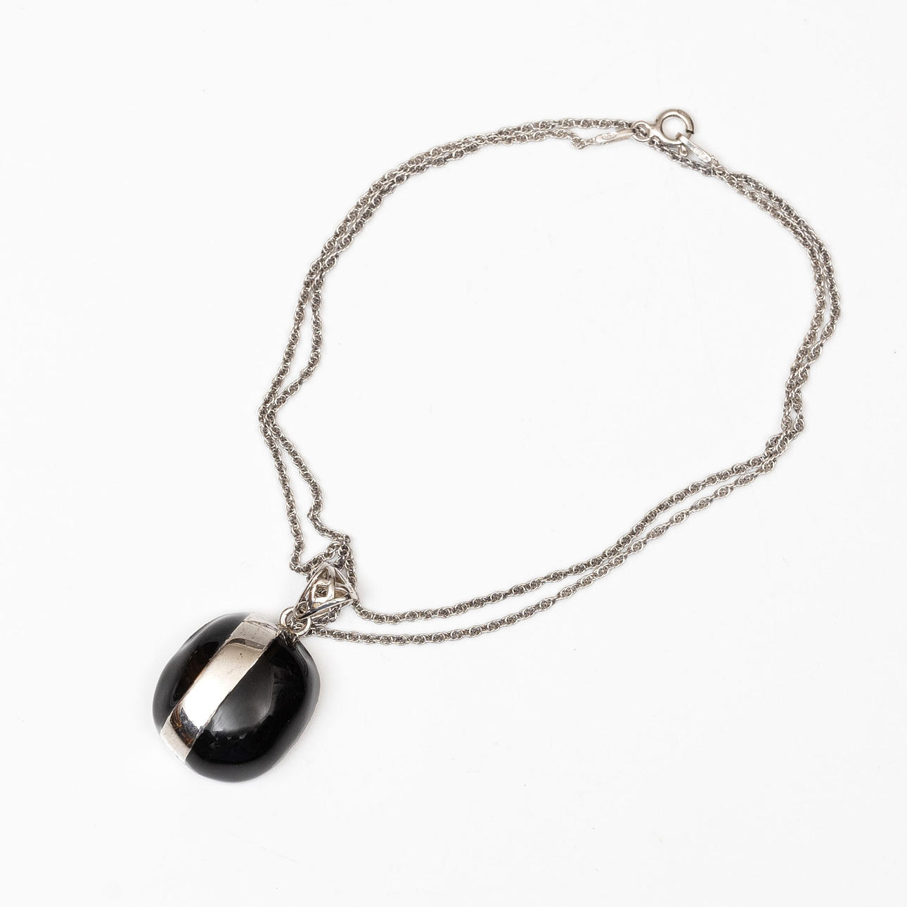 NECKLACE & EARRINGS, Sterling silver, Enamel decor.