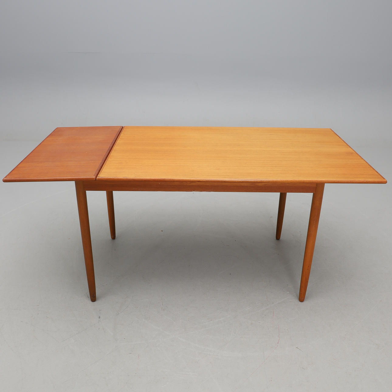Bones of book. Sarg and board veneered with teak. With flap of 40 cm. Length 125 (with flap 165), width 80, height 71 cm.