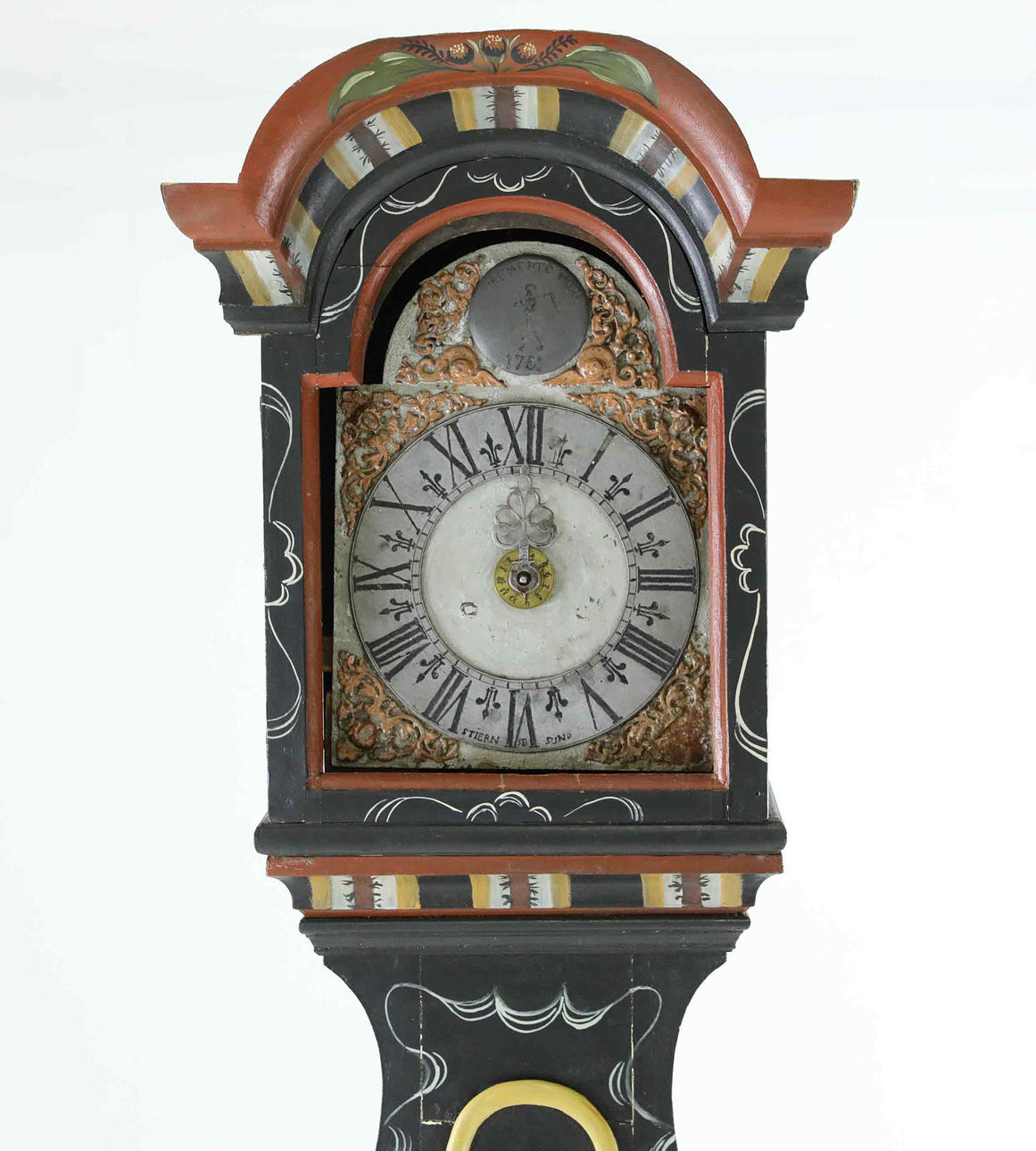 Newer kurbit painting probably Järvsö, marking above dial: Memento Mori 1761. Marking on dial: Stjernsund, S.B