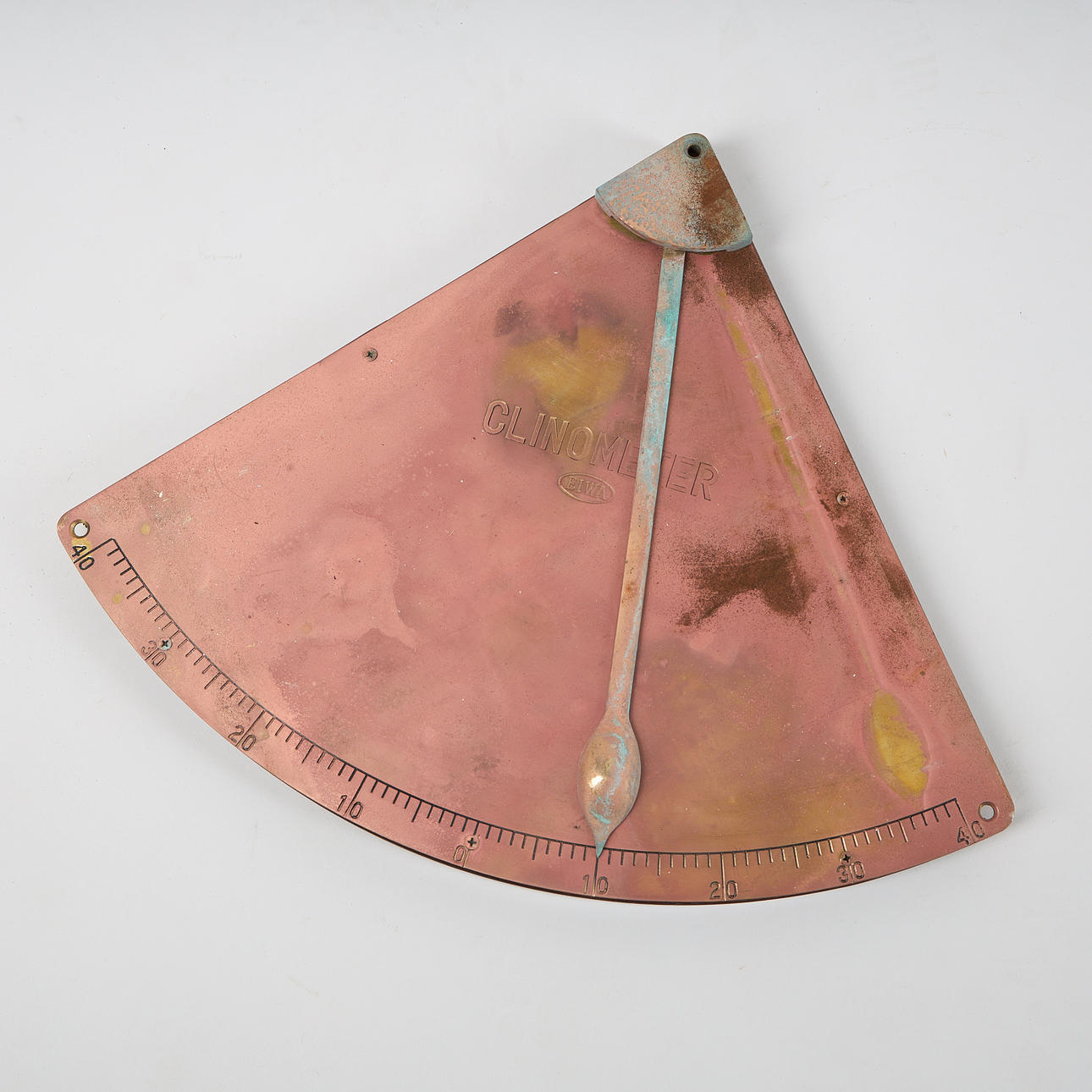 Clinometer, 34.5 x 44 cm, two pressure gauges diameter 15-34.5 cm. Compass, diameter approx. 22 cm.