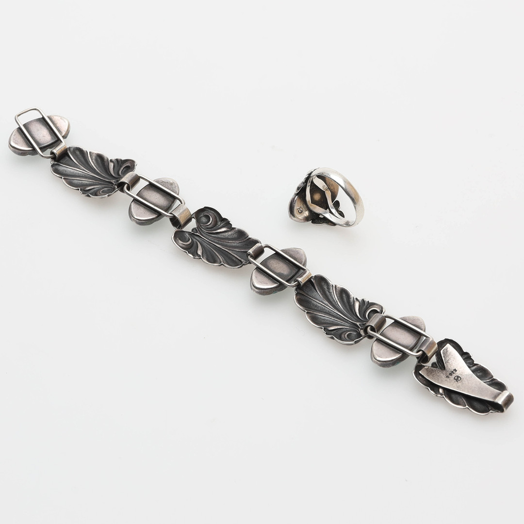 4412223. BRACELET and RING, silver.