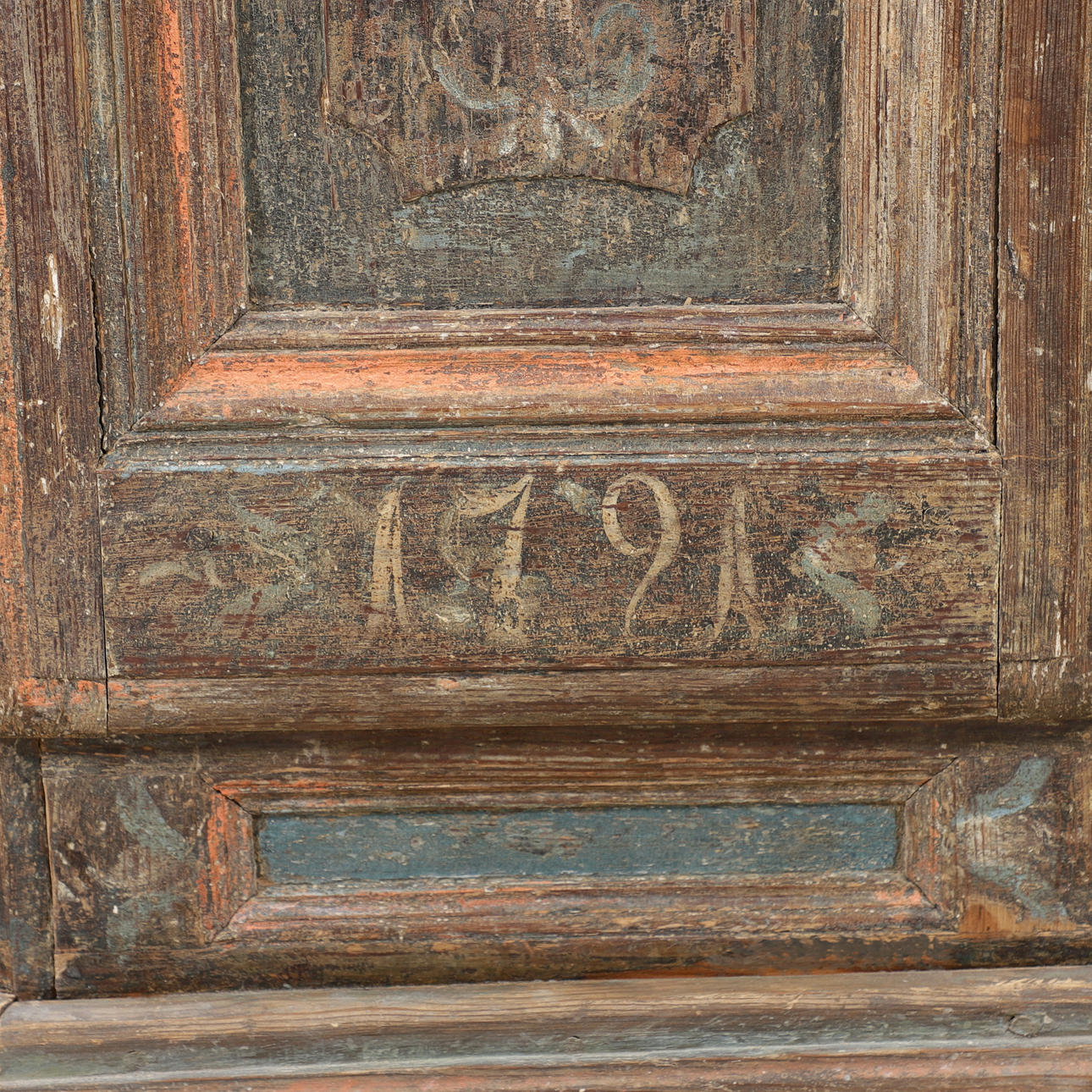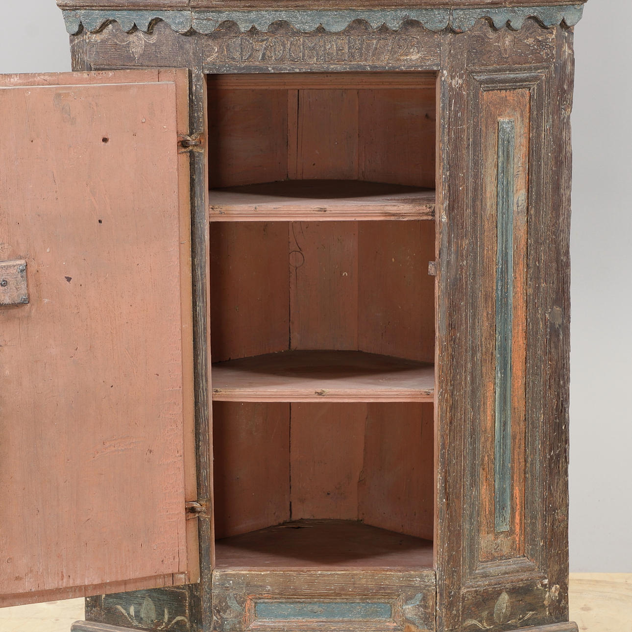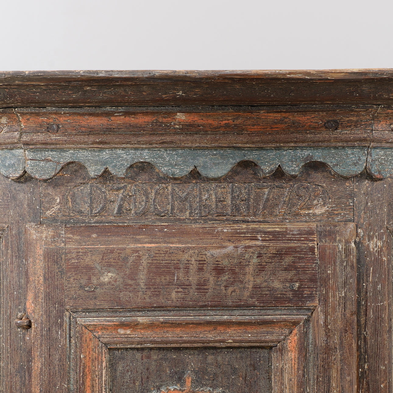 Height 98,5 cm, width 82 cm, side depth from corner 55 cm. Marked 1721 as well as “D.7:DCMBER.1772".
