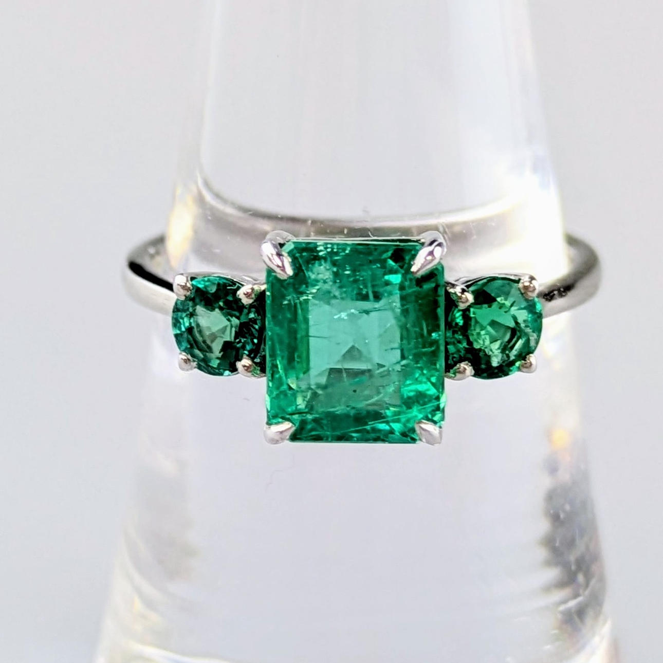 Emerald ring, 14 ct. White gold, emeralds totalling 1.62 carats. , Color: transparent green, IGI certificate, Weight: approx. 2.2 grams, Ring size: 16.7 mm.