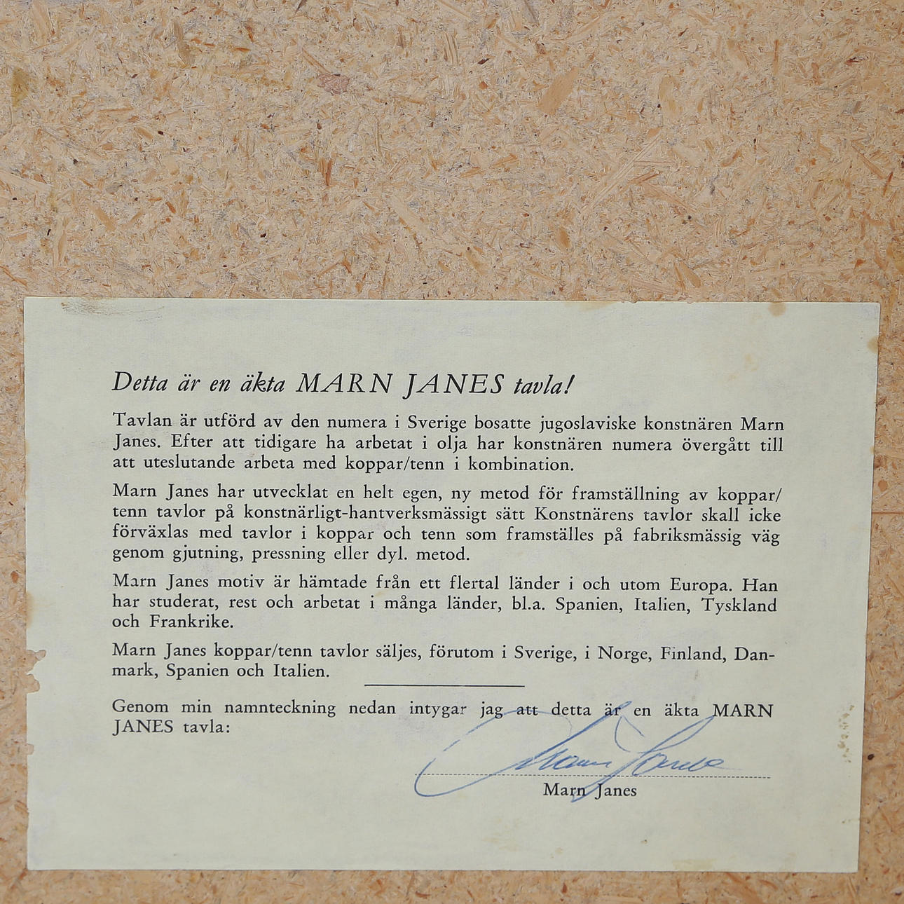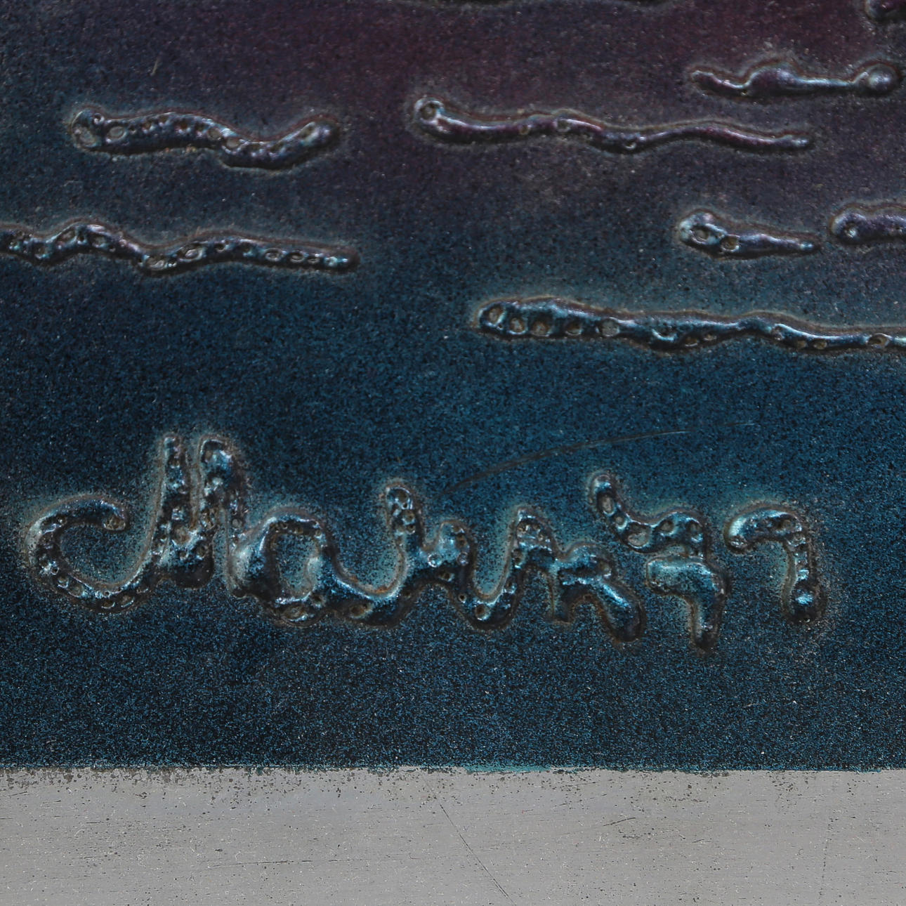 4412437. MARN JANE'S “SWANS” COPPER/PEWTER CHALKBOARD, SIGNED.