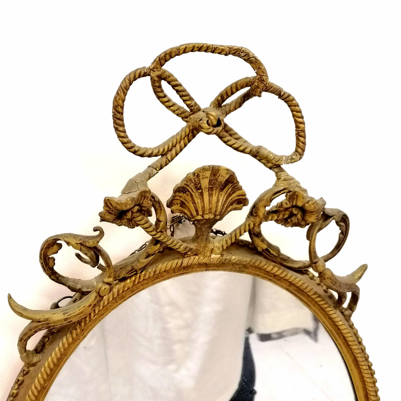 Antique oval girandole mirror with rope twist detail - 105cm x 70cm.