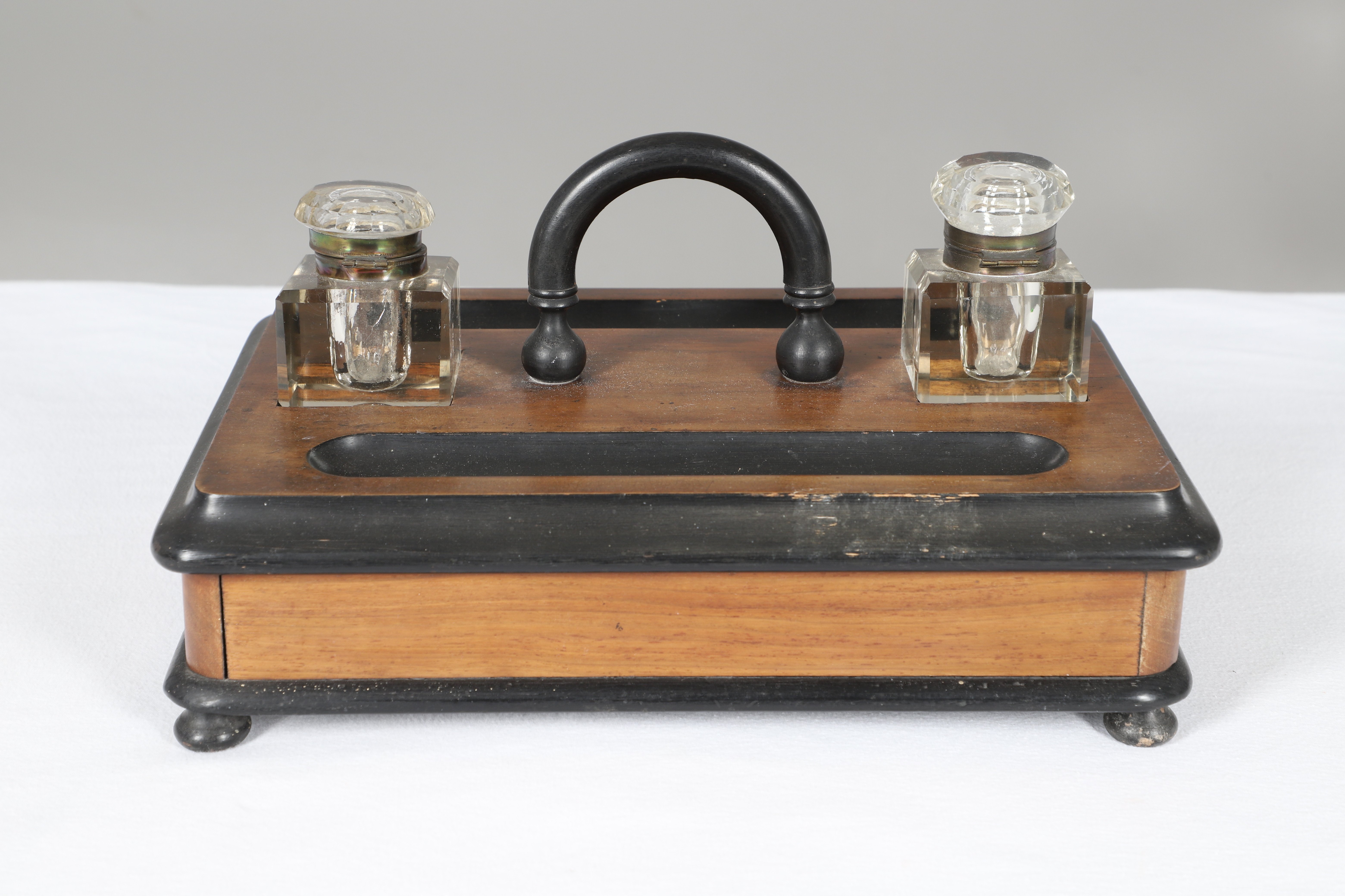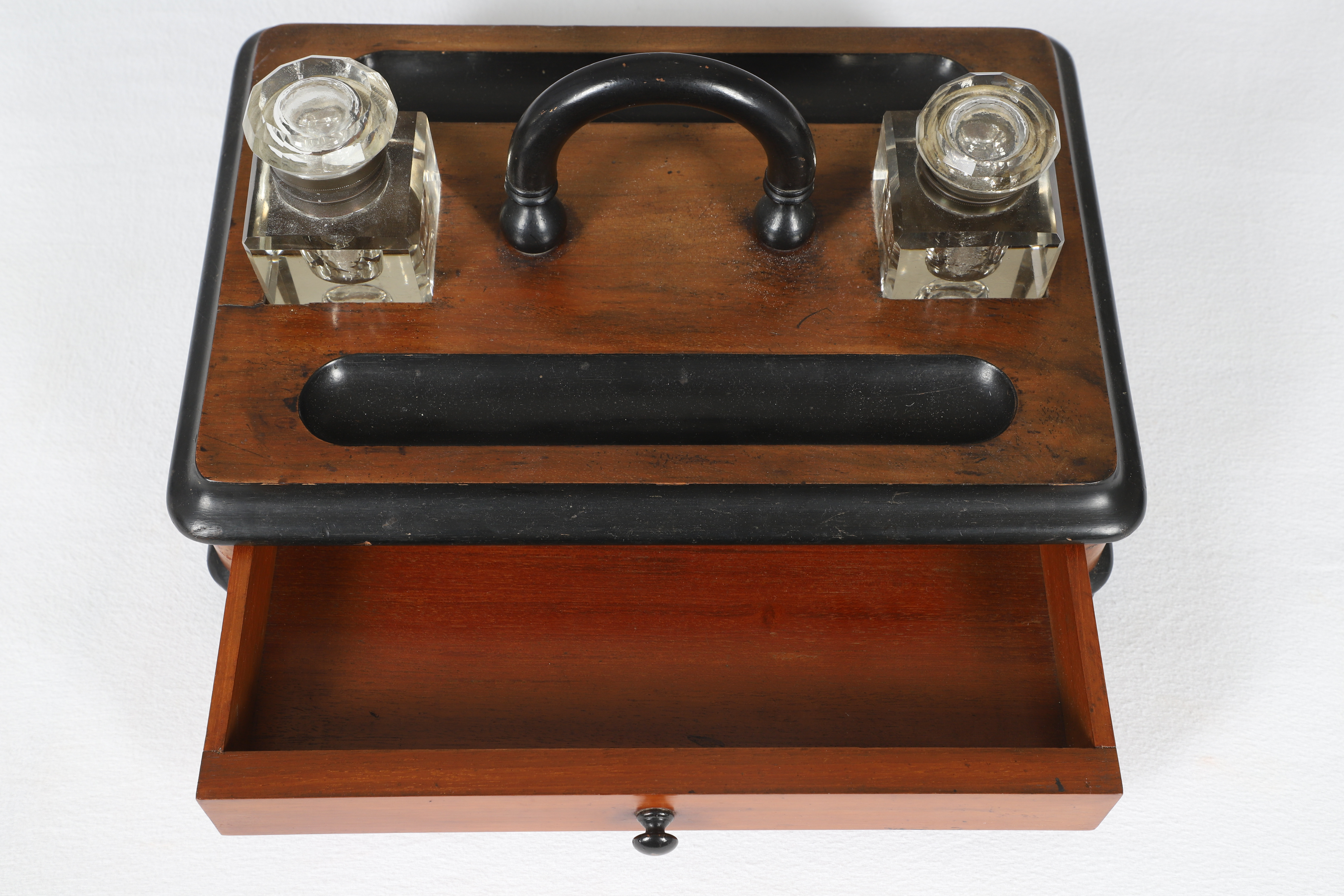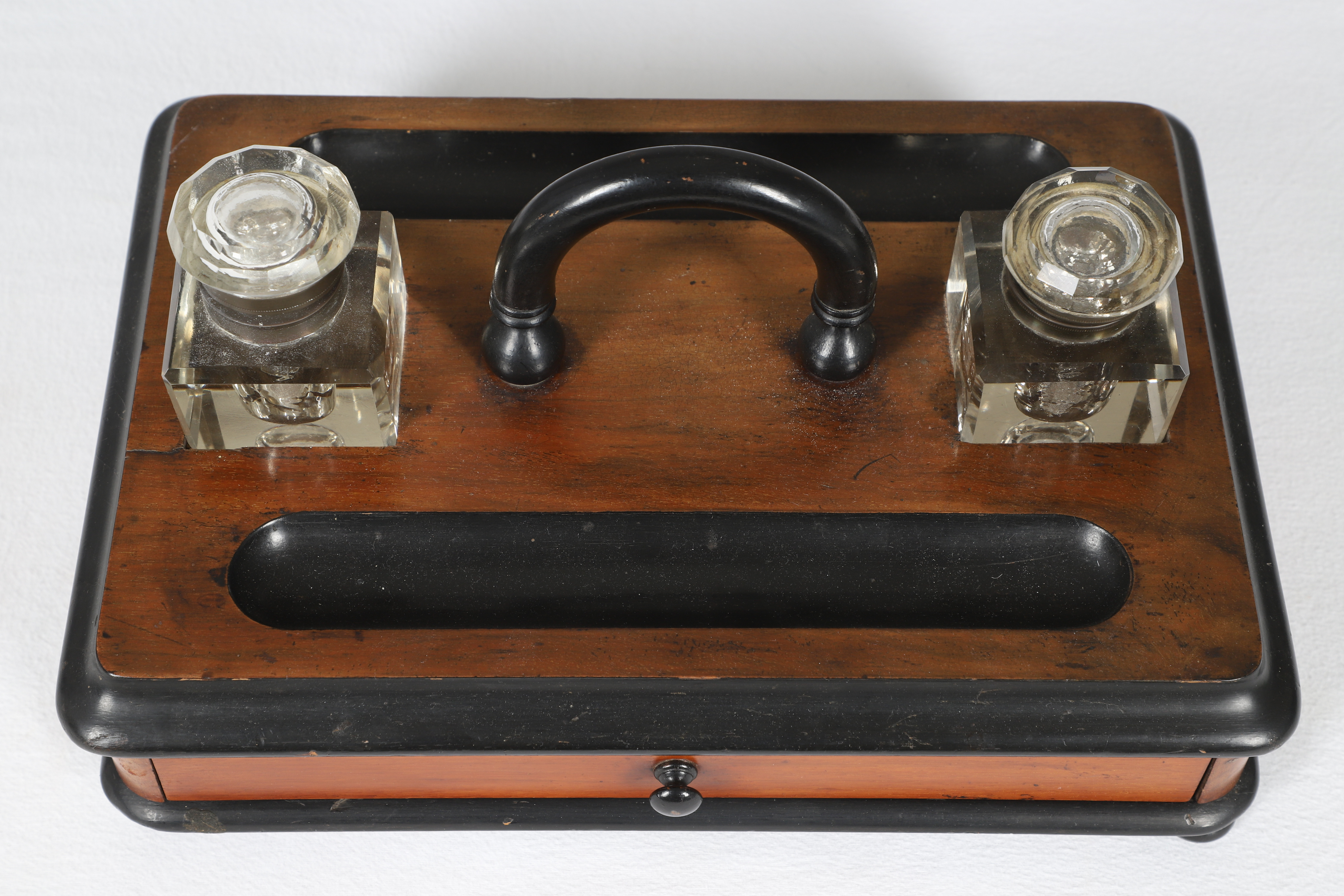 4412906. VICTORIAN WALNUT & EBONISED INKSTAND.