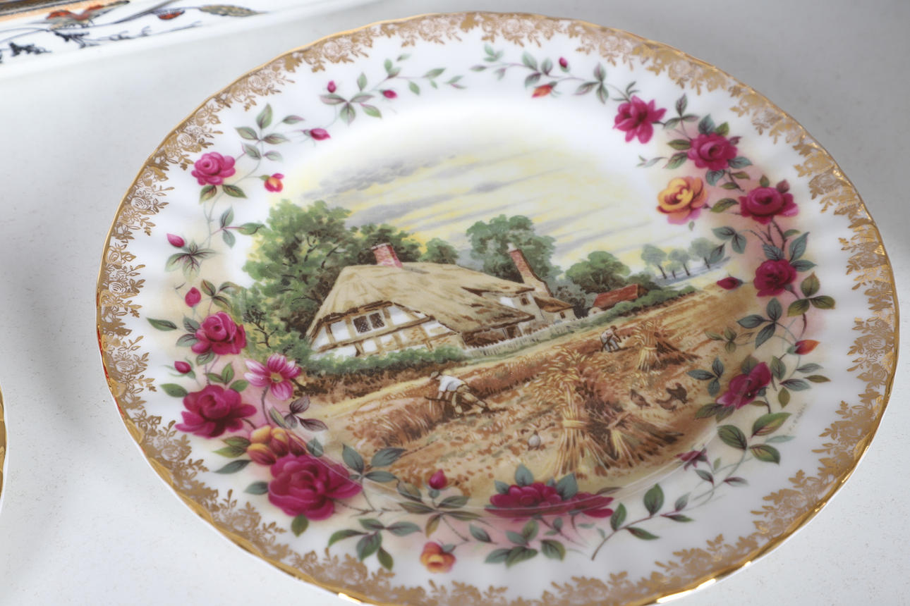 A coffee set in the Ryde pattern, including a lidded coffee pot (24cms high), six cups, five saucers, sugar bowl and milk jug (one cup cracked and chipped). Also with two Royal Albert plates, Royal Worcester Evesham, and Victorian lidded soap dish.