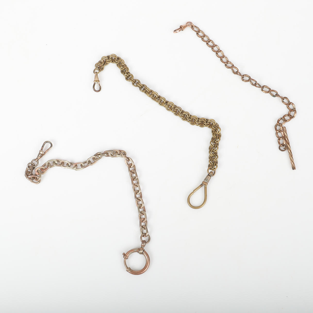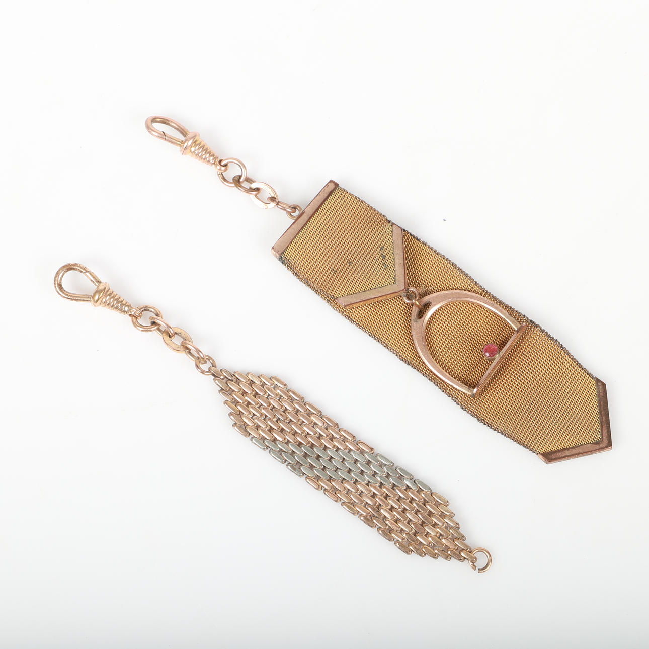 WATCH CHAINS AND CHATELAINE, 15 pieces, gold plated.