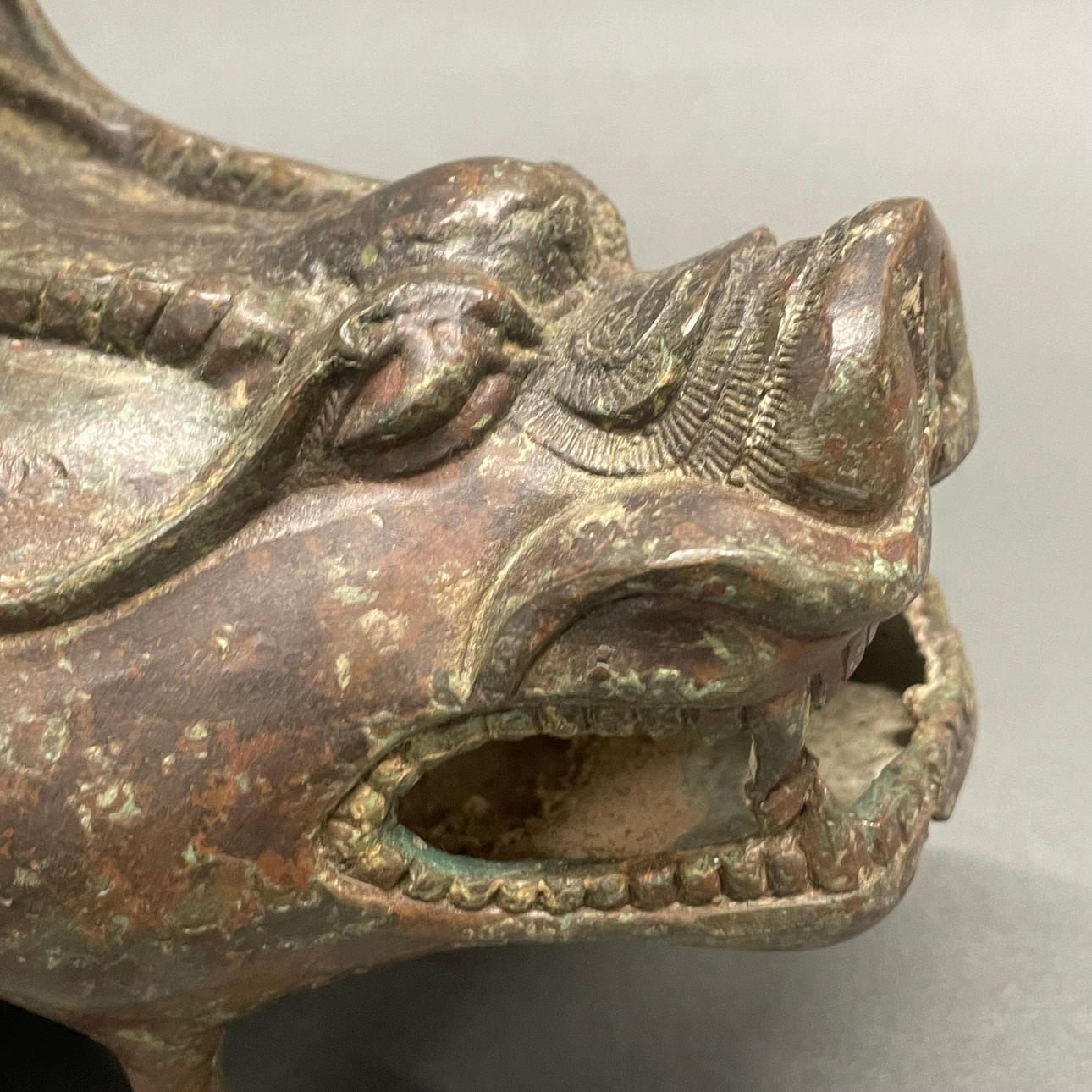 A Chinese archaic form bronze censer, H. 18cm, W. 23cm.