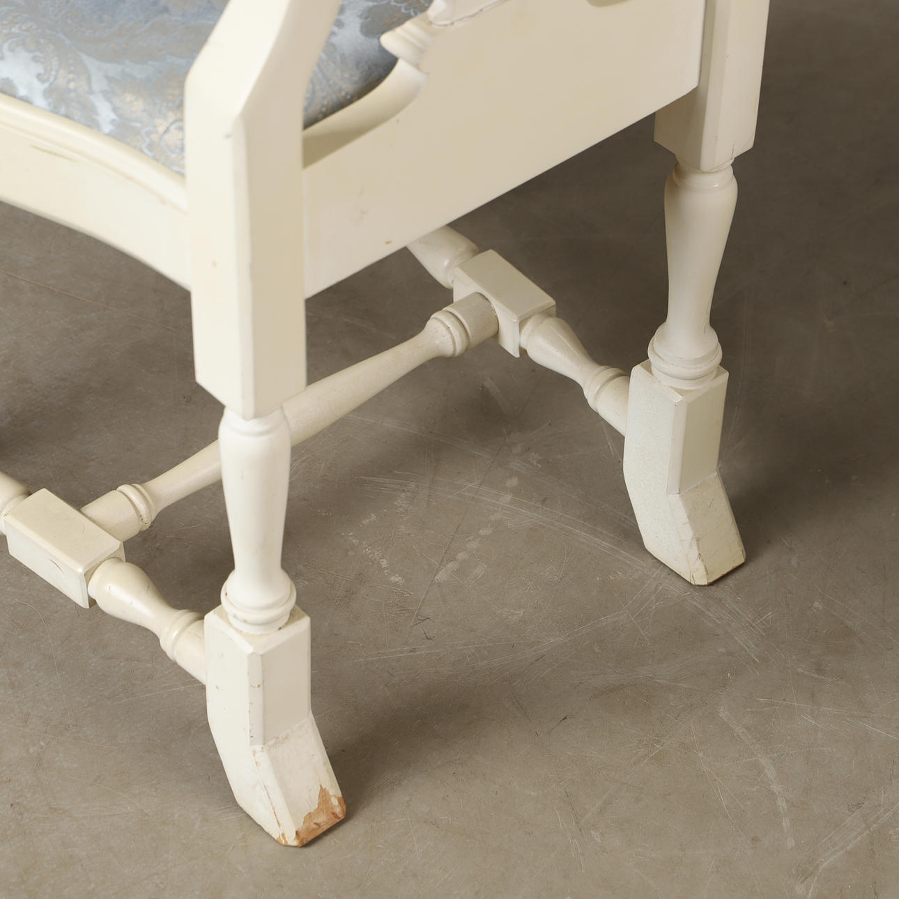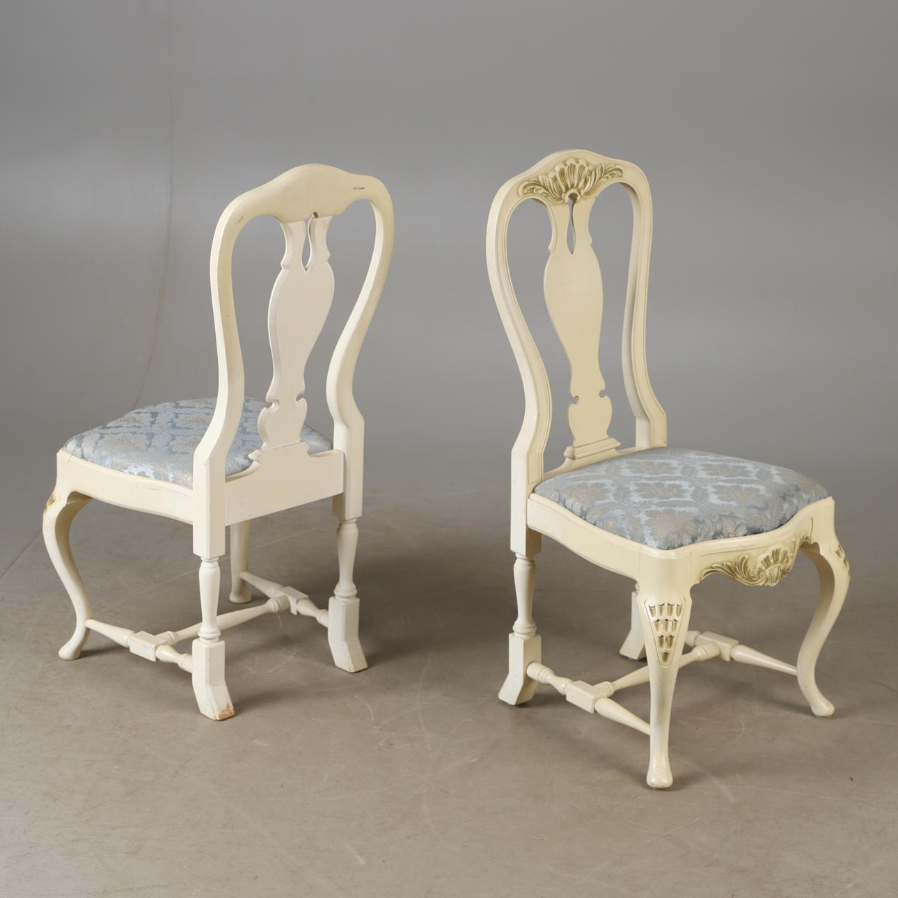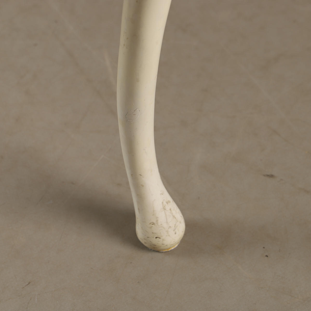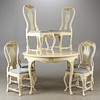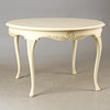 Dining table with 6 chairs. Table diameter 115, height 74 cm. Two insertion boards, width of 45 cm.
