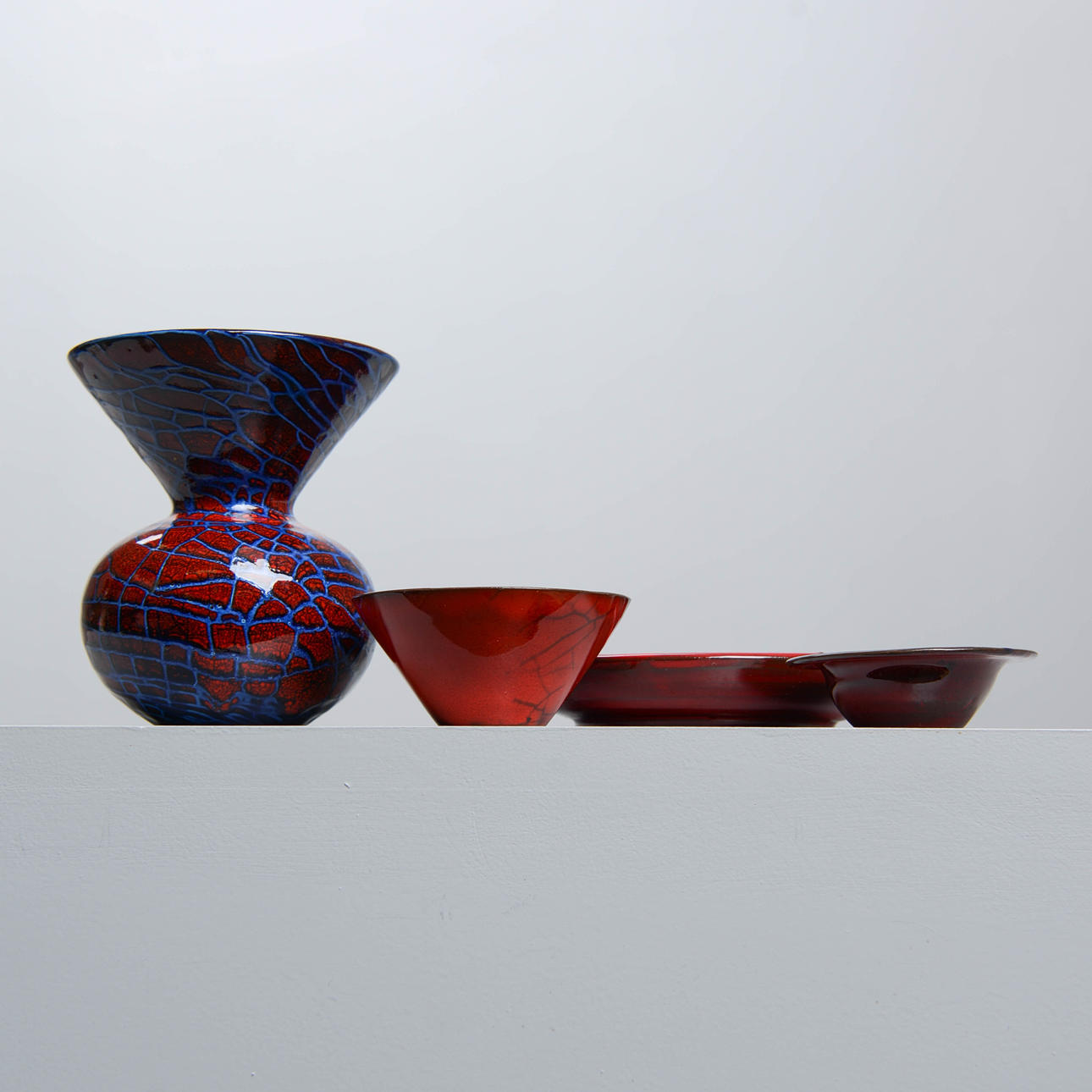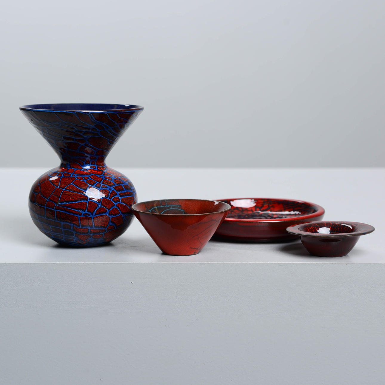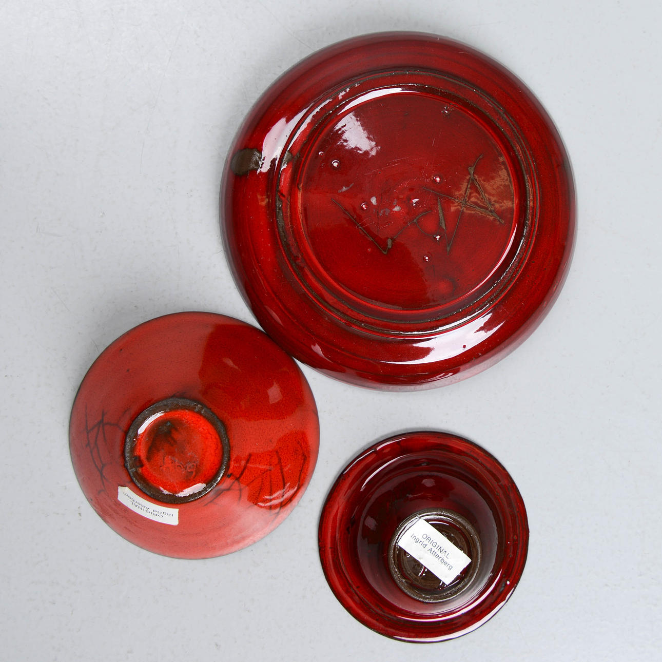 But Ingrid Atterberg would not have taken the place as one of the greats of Swedish ceramics, if she had not managed to reconcile her feeling for the clay with a style-proof modernist compass. Especially during the 1950s this manifested itself, with series such as Pepita, Domino, Pylon, Short series, Tricorn, Chamotte, Spira and others. She left the factory in 1964, for other design assignments. By then, she had been there for 20 years. Eventually she resumed ceramics in her own studio in Uppsala, where she continued her diligent experimentation with clay and glazes, but with a radically different ware as a result.