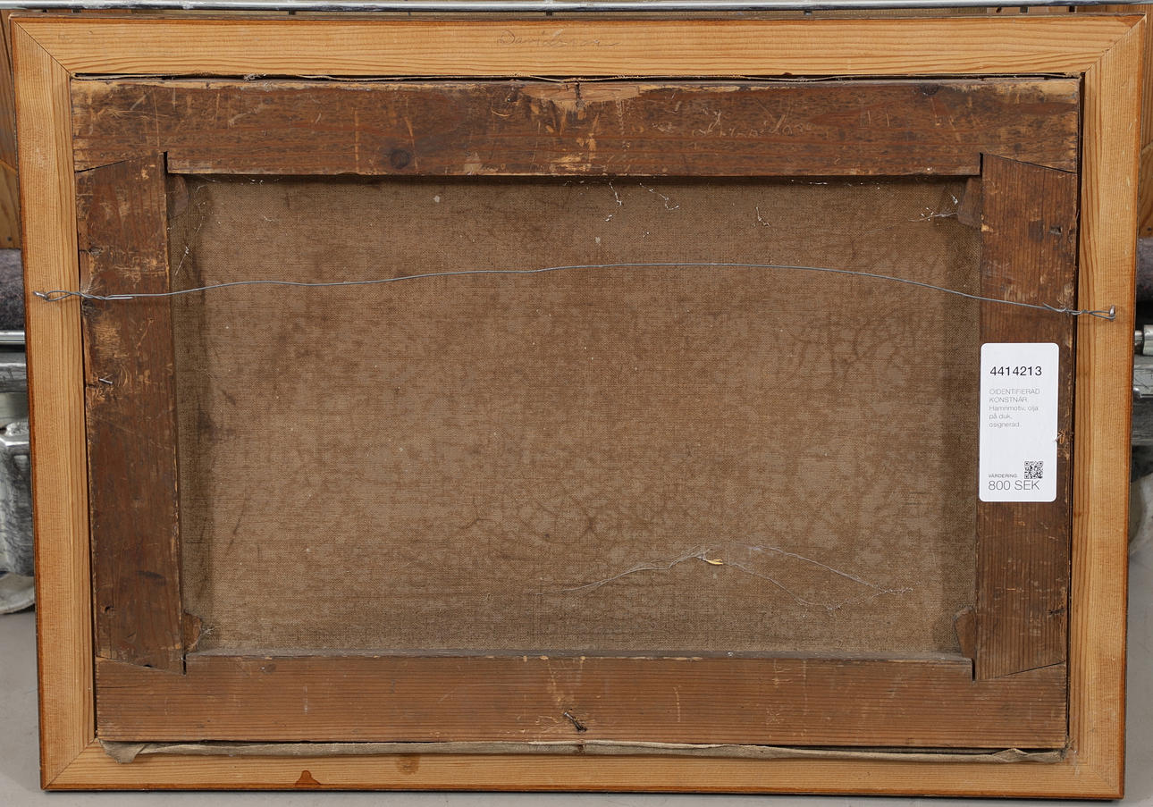 4414213. OIDENTIFIERAD KONSTNÄR. Harbour motif, oil on canvas, unsigned.