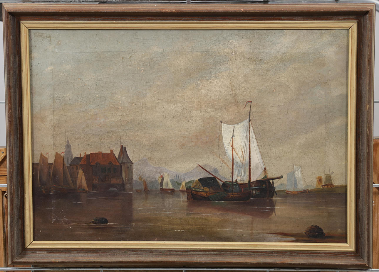 OIDENTIFIERAD KONSTNÄR. Harbour motif, oil on canvas, unsigned.