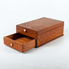 casket in veneered wood, probably oak, with two drawers and folding mirror. Small round handles in pearl-like material.