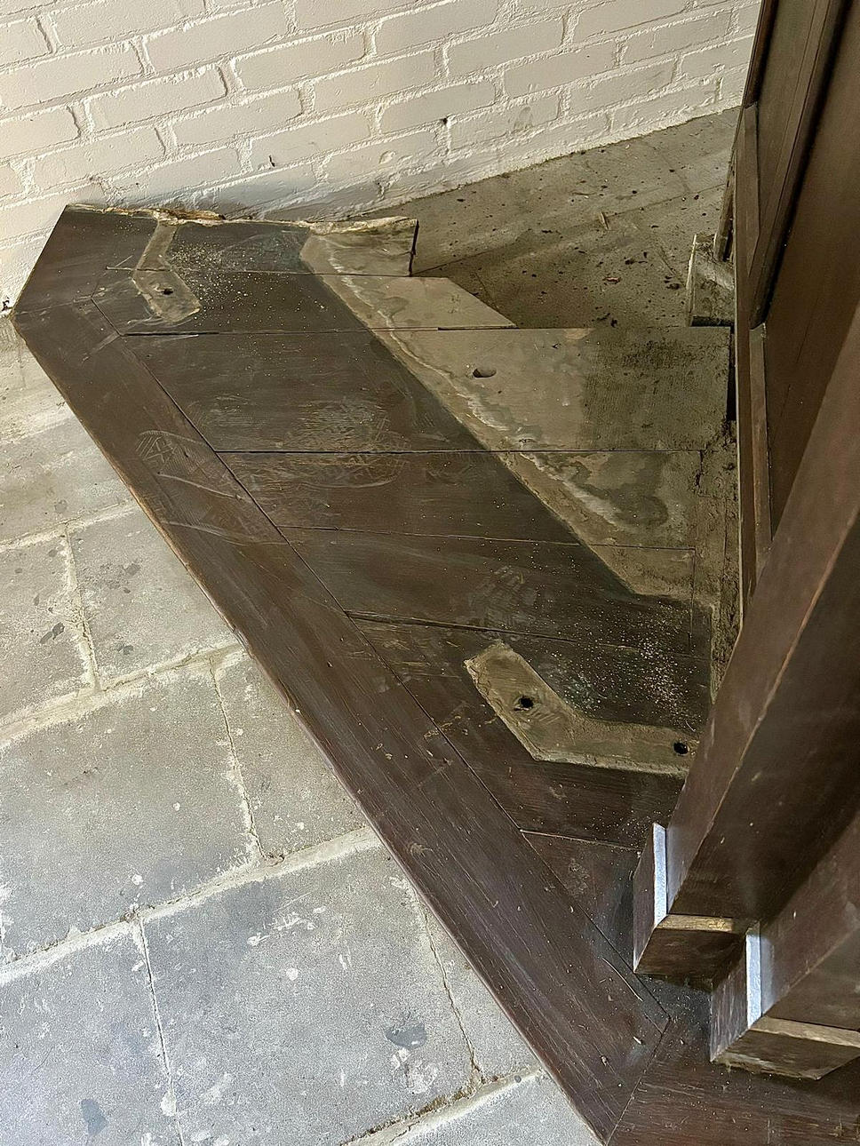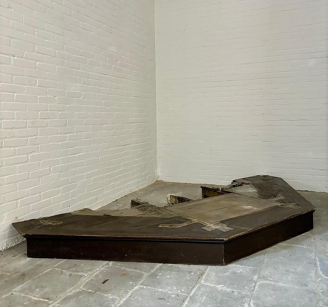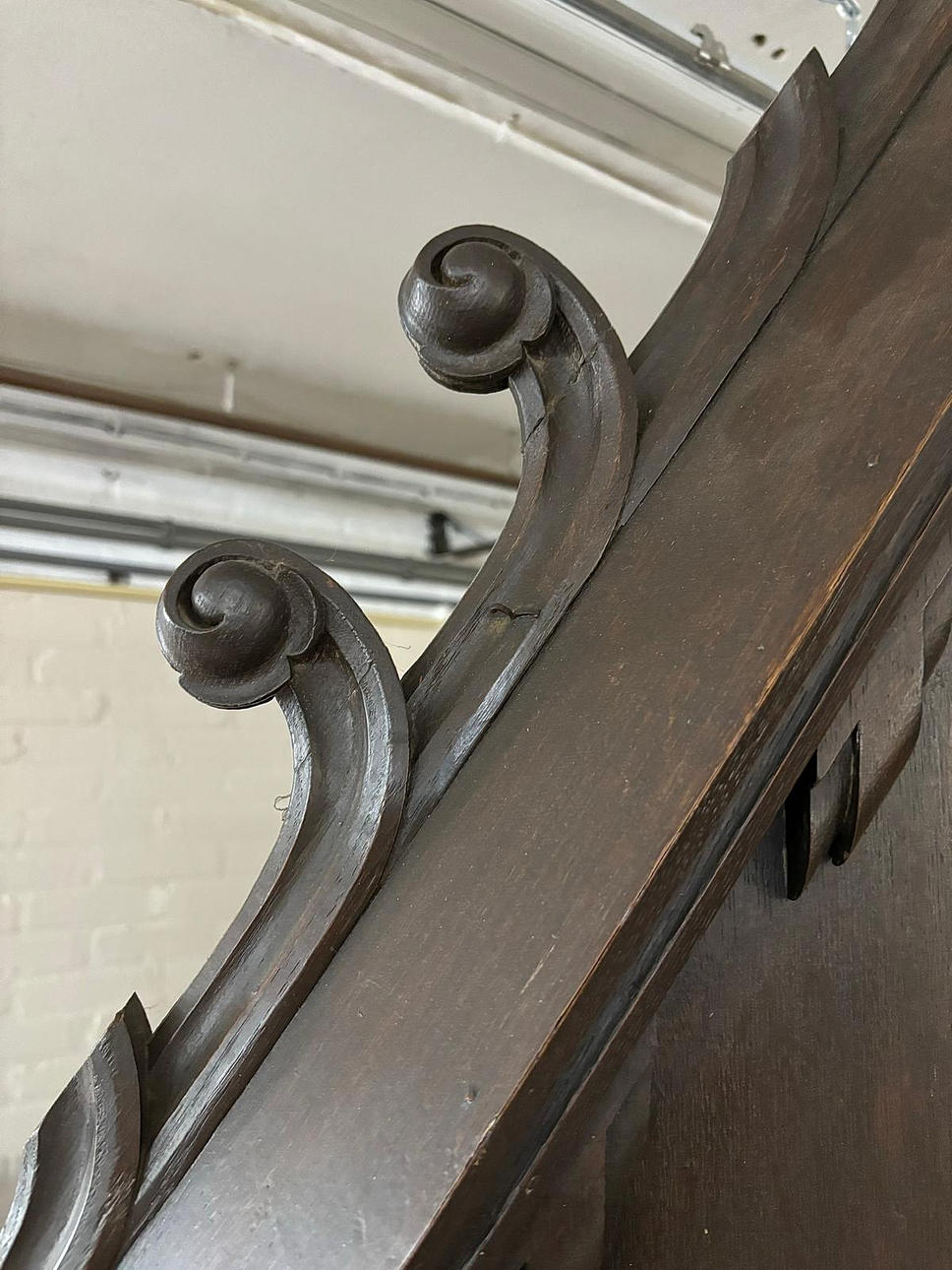Signs of age and use, decorative elements of the pointed gable are missing, defects and imperfections in places. Rubbing and scratches.