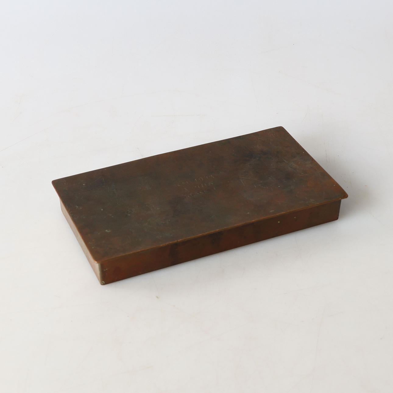Engraved K.M 1948 Swedish lightweight bronze. Dimensions approx. 10 x 19 cm. Height approx. 2.5 cm.