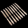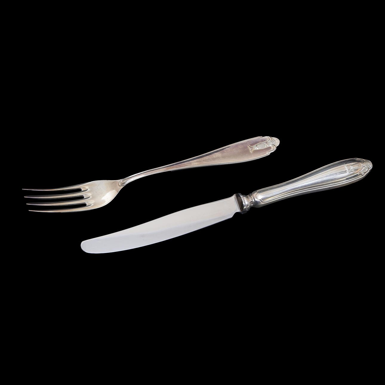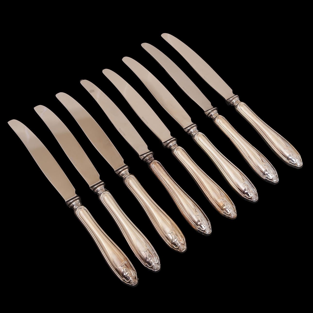8 Forks 18 cm, weight 256 grams 8 Knives 20,5 cm, weight 521 grams (stainless steel blades) Total weight: 777 grams.