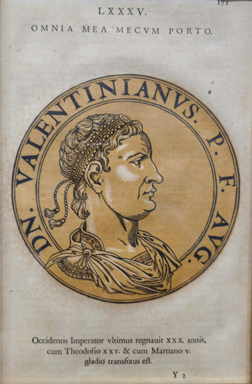 TWO FRAMED ENGRAVINGS DEPICTING TWO ROMAN EMPERORS.