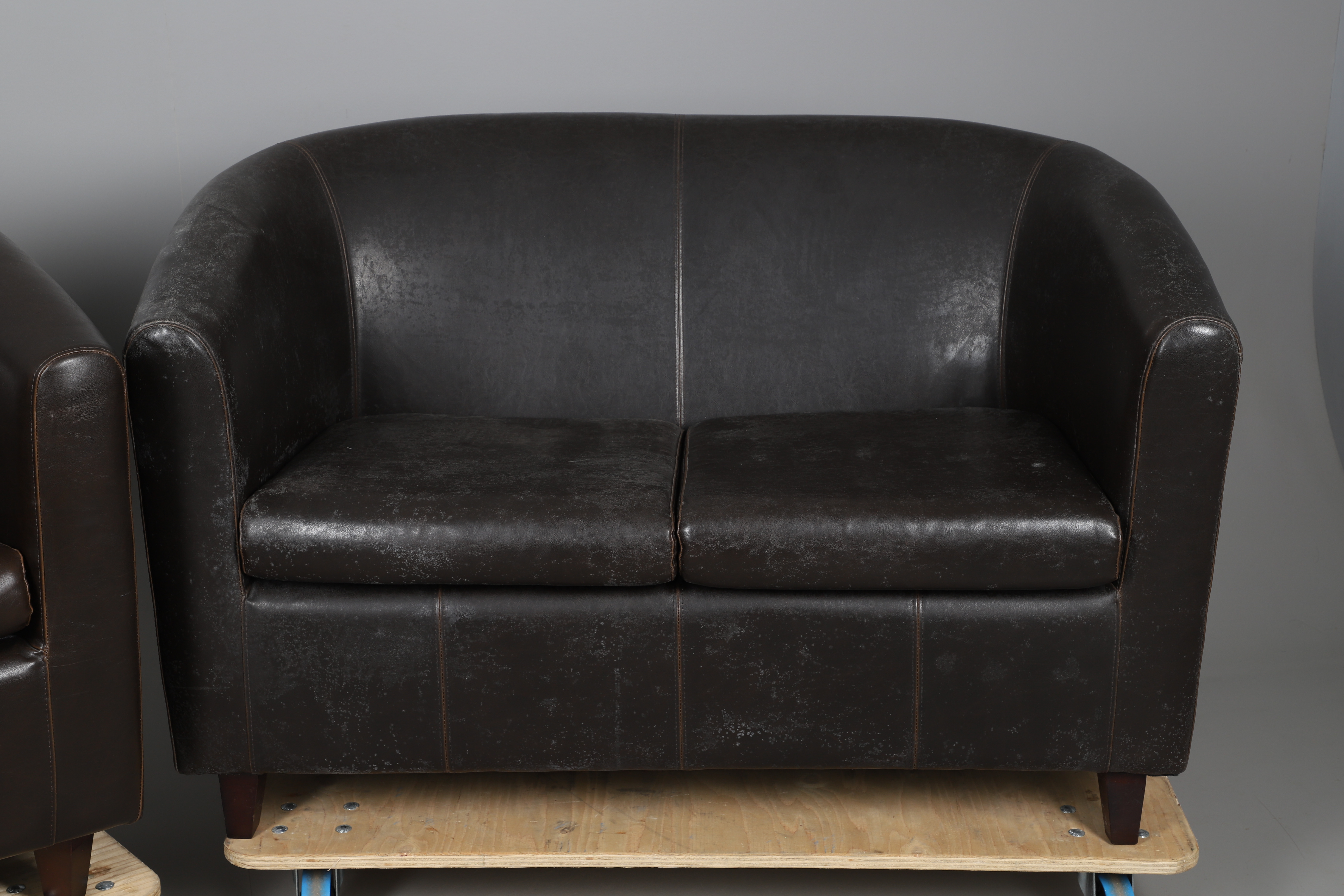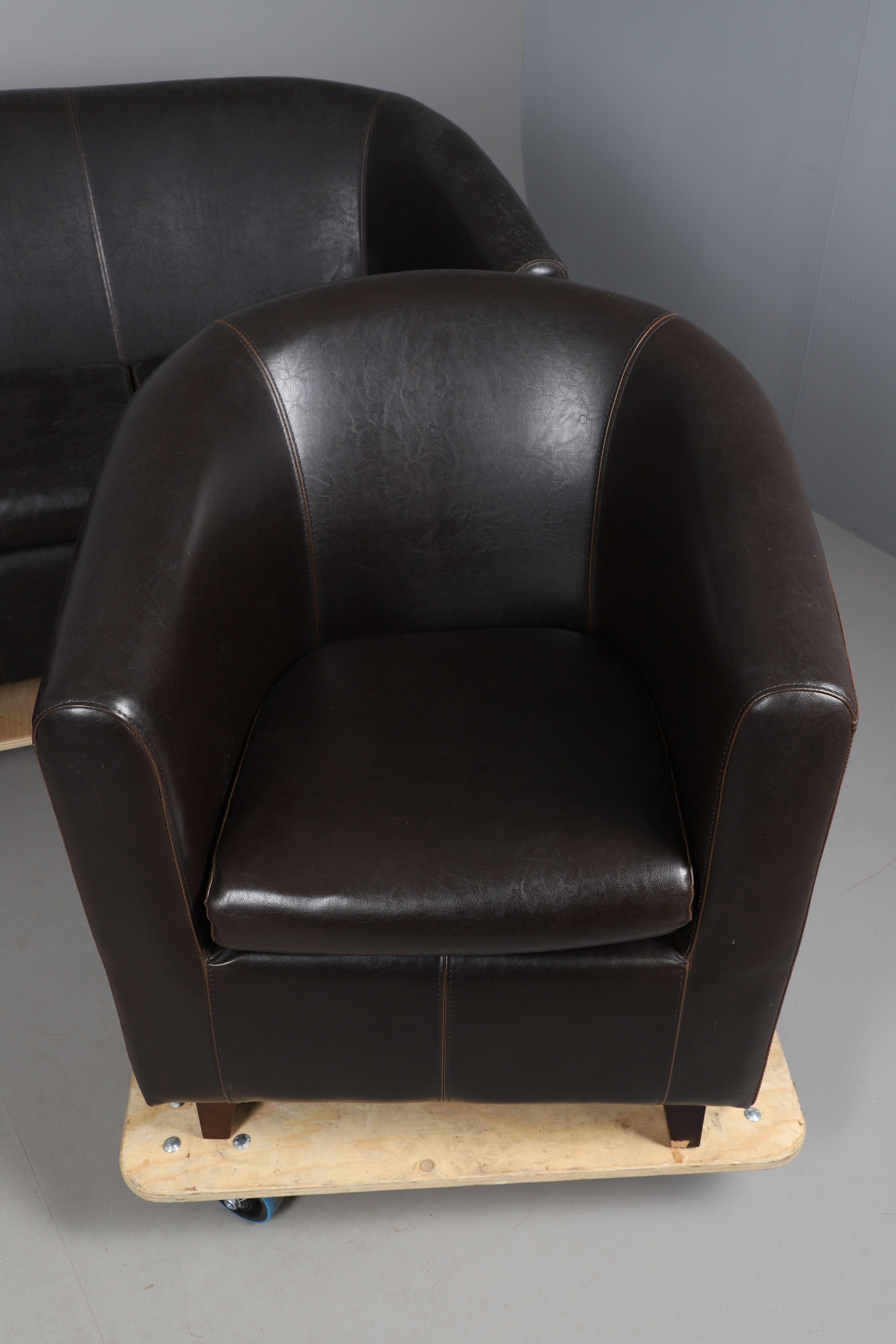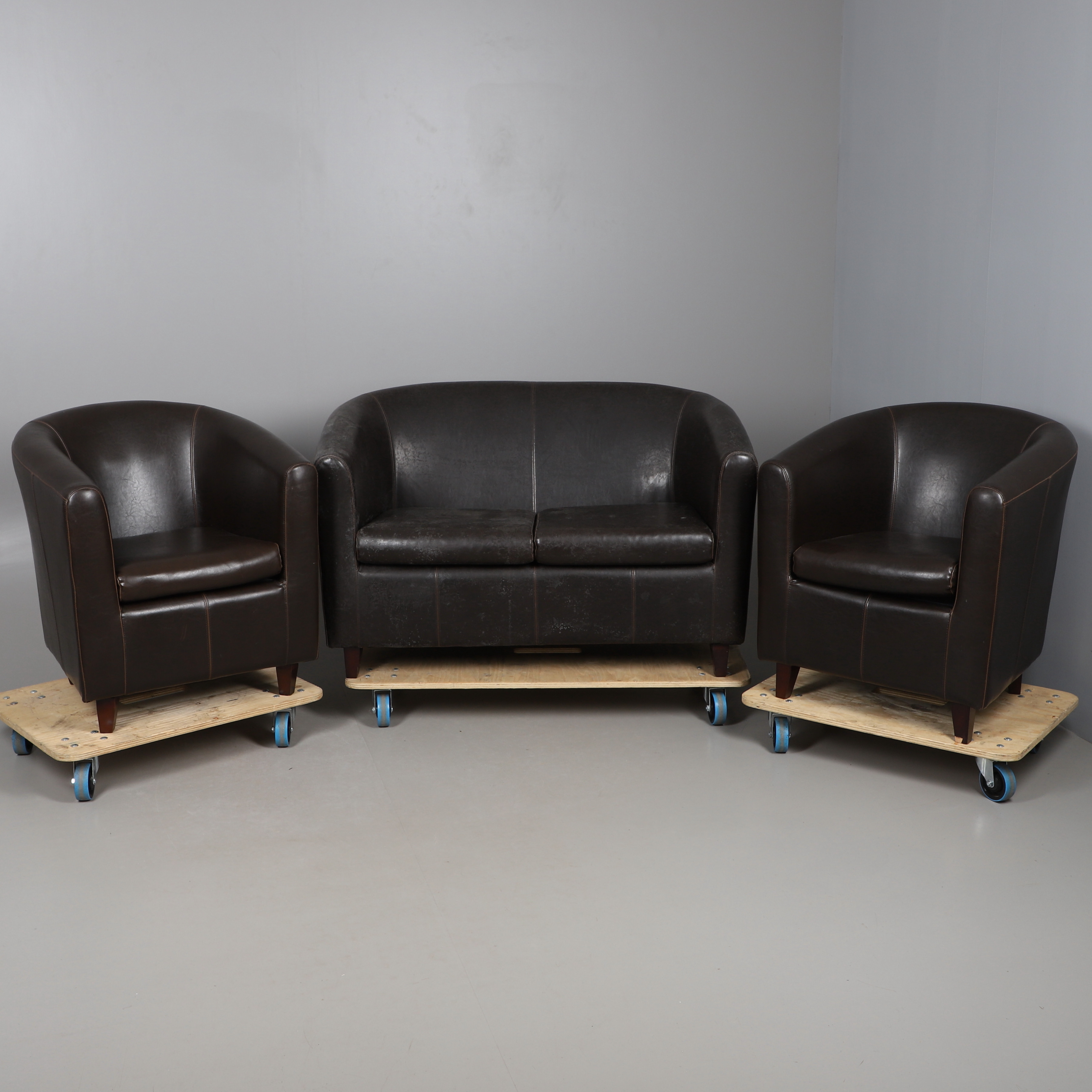 4415450. A HIDE COVERED THREE PIECE SUITE.