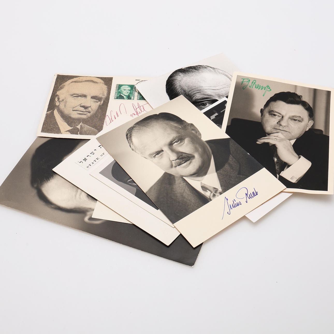 Autographs. Max Petitpierre (1899 — 1994), Frans Jospeh Strauss (1915 — 1988), Julius Raab (1891 — 1964), Bruna Kreisky (1911 — 1990), Herbert Wehner (1906 — 1990), Abba Eban (1915 — 2002), Walter Cronkite (1915 — 2009), Jan Eliasson (1940 —). All proceeds go to Médecins Sans Frontières. Provenance: Uno Grönkvist's autograph collection