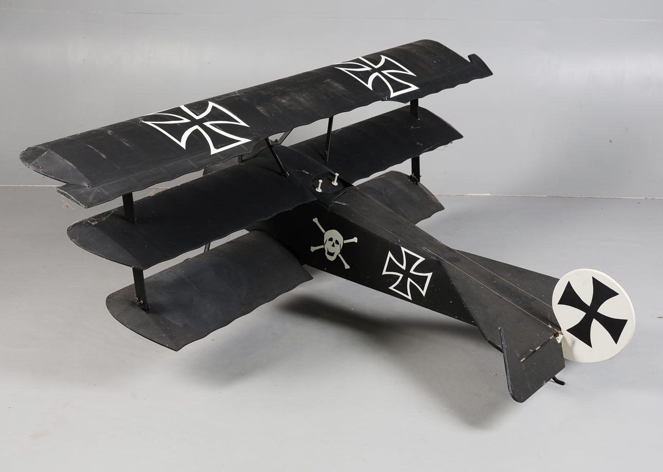 A MODEL FOKKER DR1 REMOTE CONTROL PLANE.