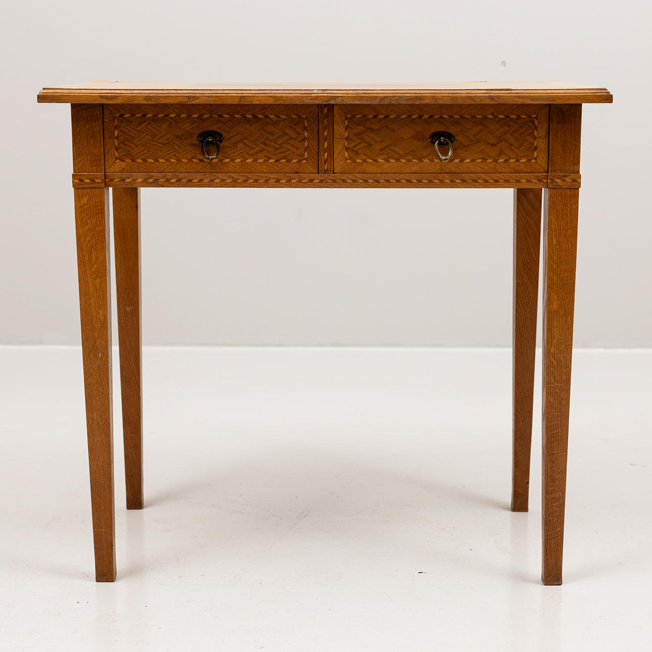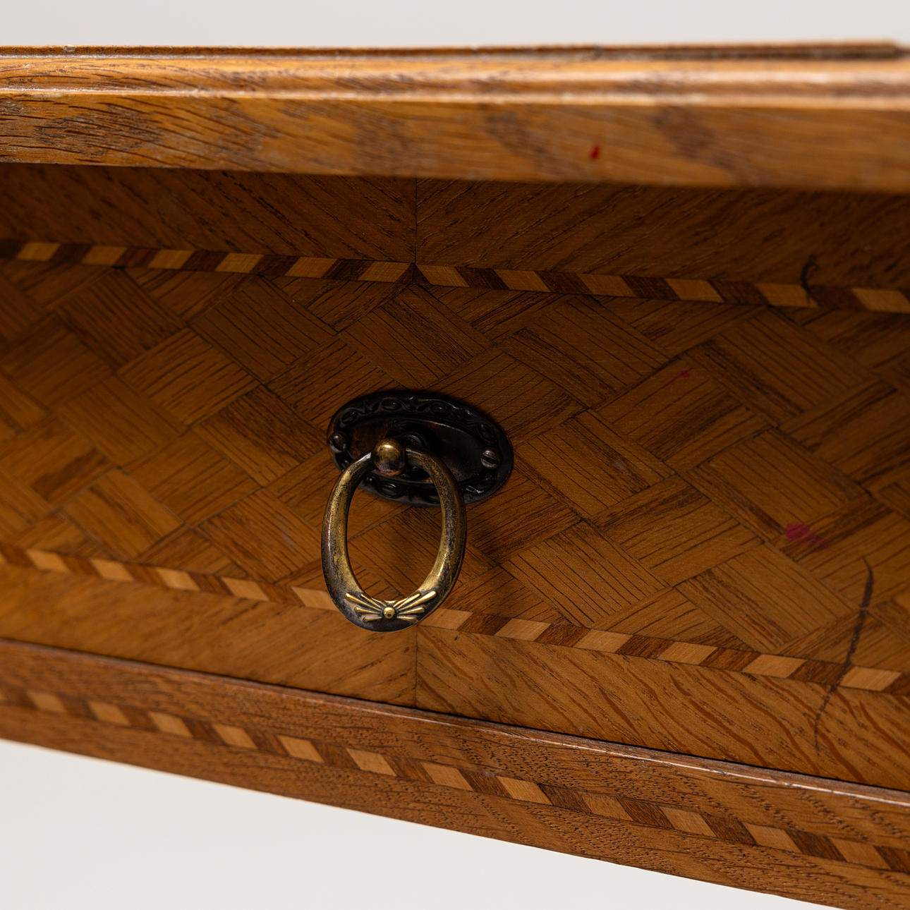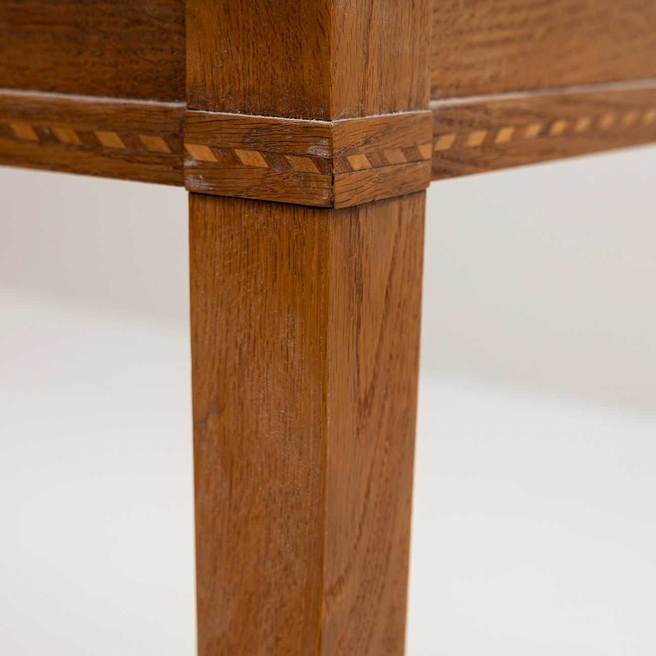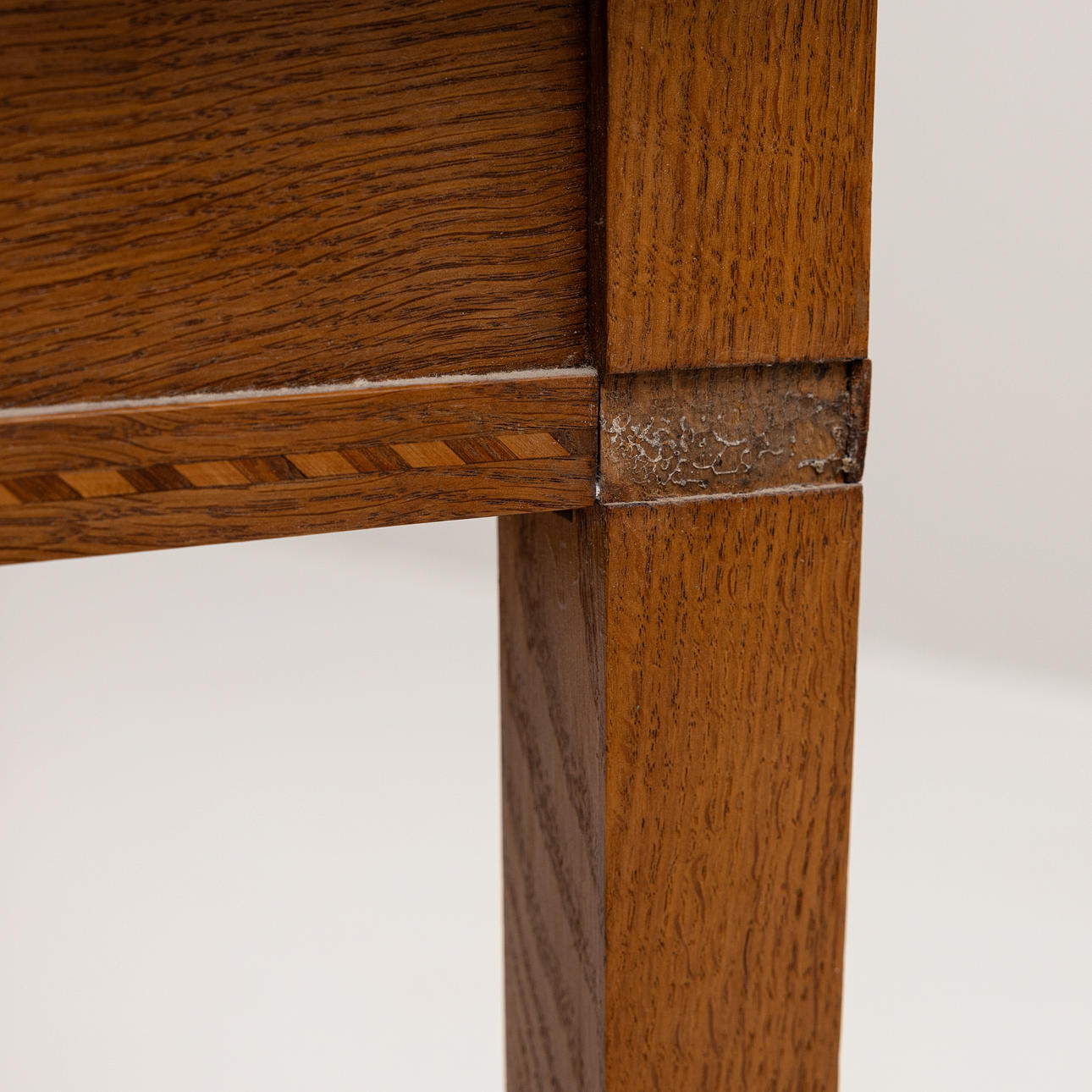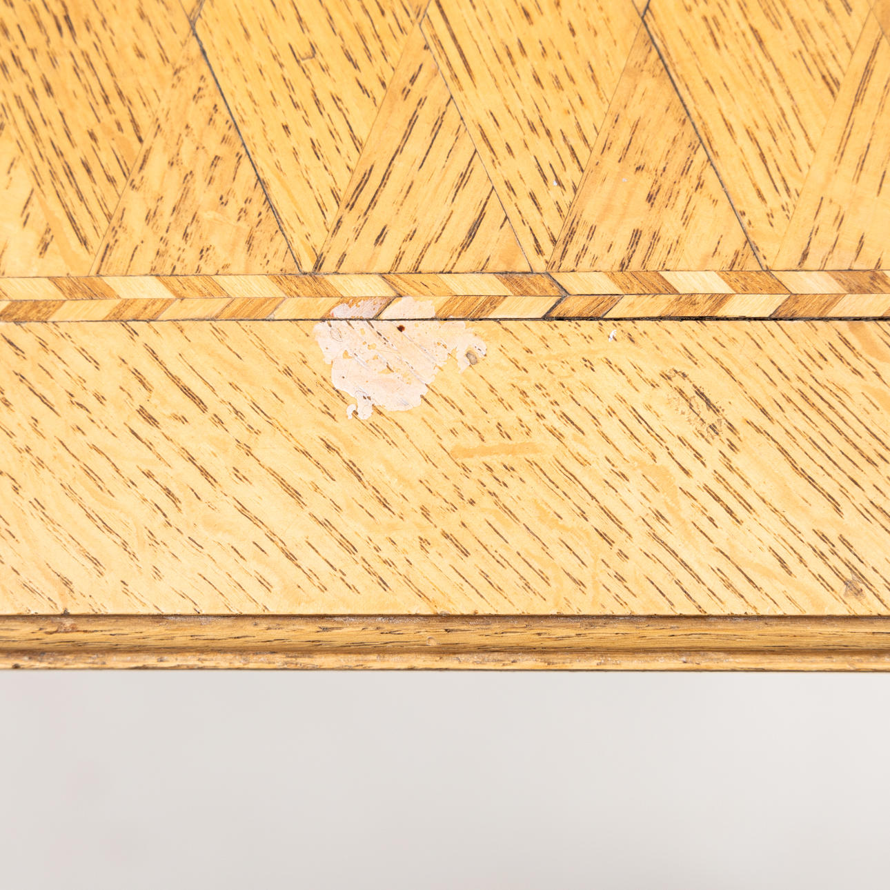 Wear, marks, veneer damage, paint stains, bleached. Minor cunning is missing at one leg.
