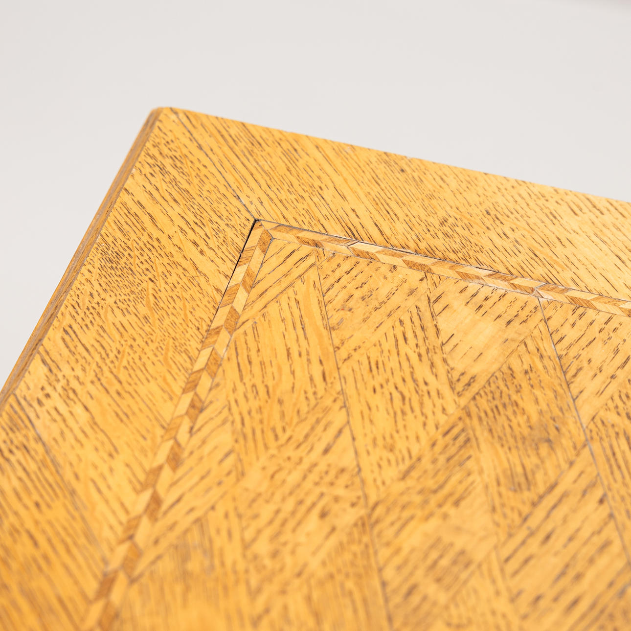 Oak/oak veneer with intarsia decor. Two boxes. Length 80, width 50, height 75,5 cm.