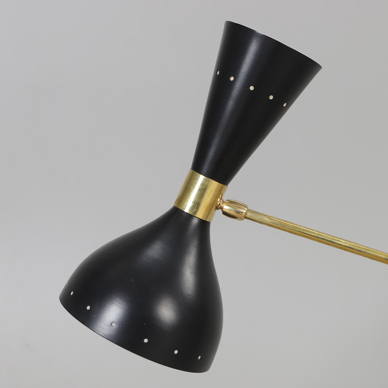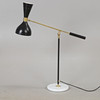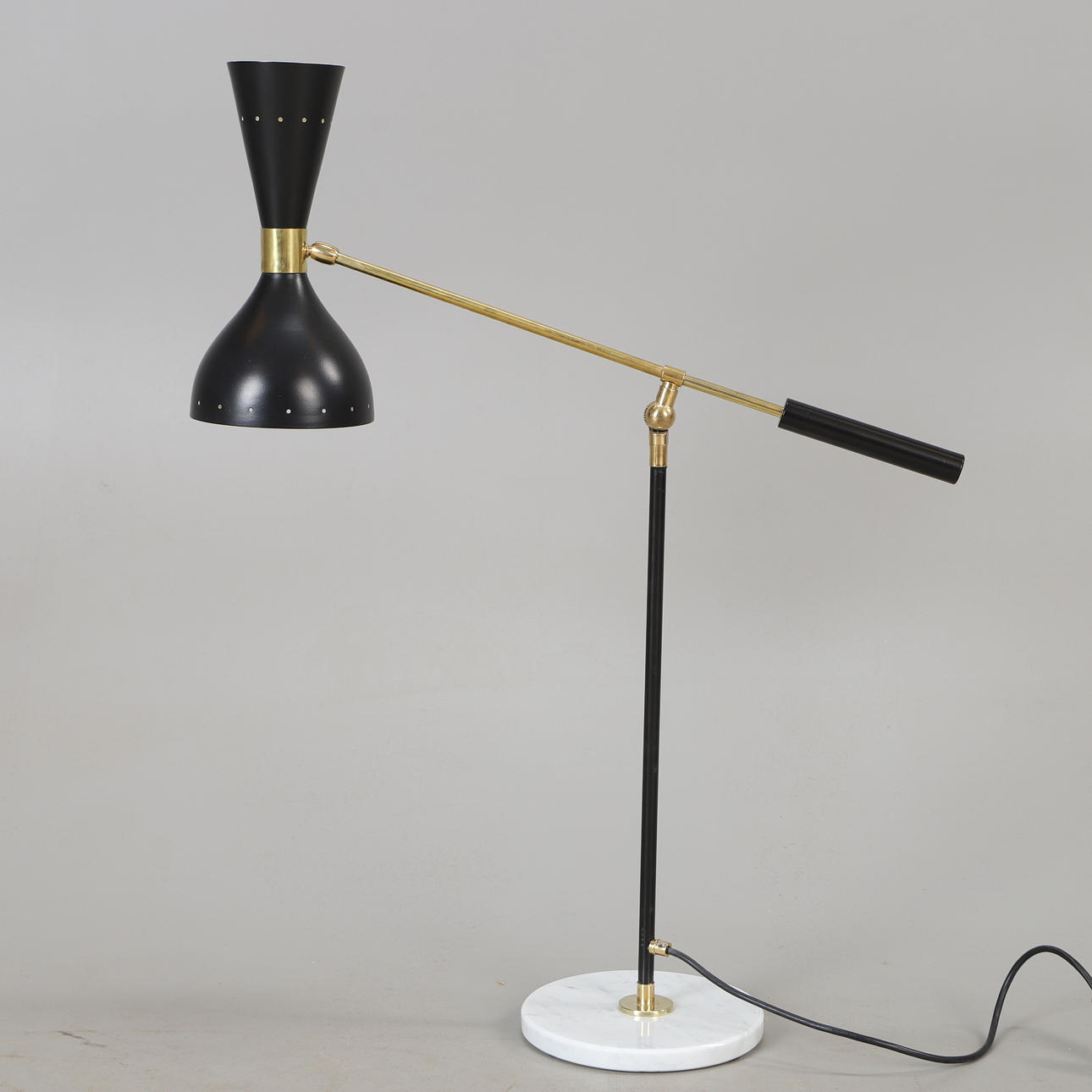 Table lamp with marble top, frame of patinated brass, lacquered metal lampshade, double light source E14