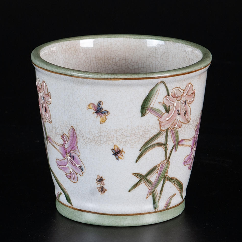 Height 12 cm and 13,5 cm in ø opening Decor of lilies and insects, conscious crackling.
