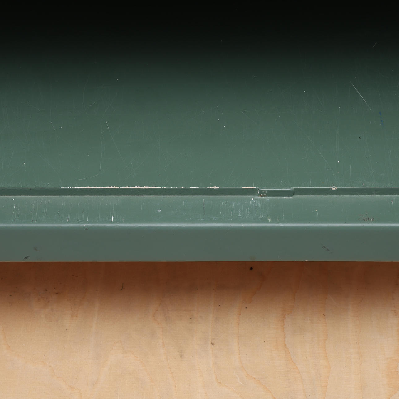 Green lacquered wood, two-piece. Height 194 cm, width 100 cm, depth 42 cm.