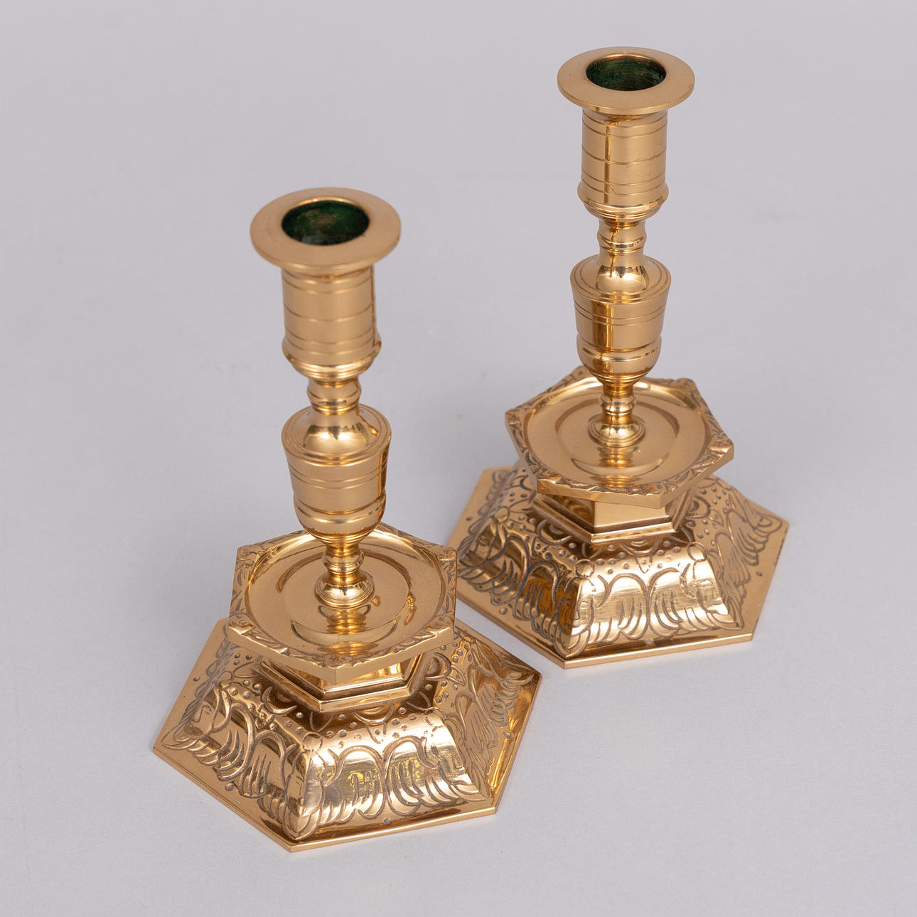 CANDLESTICKS, a pair, baroque style, brass, Ystad Metall.