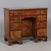 Consisting of one long single drawer at the top, with 3 graduated single drawers either side of the kneehole centre section. Middle section with a single cupboard. Drawers with decorative metal pulls. Height 76cm, width 91cm, depth 42cm.