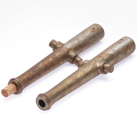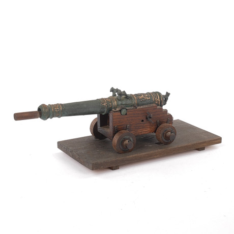 A set of two table guns, after a ship's cannon from the 18th century.