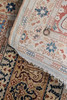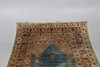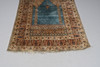 20th century, the blue ground mihrab field with central hanging lantern and trailing floral motifs, within a cream, beige and brown multiple border of boteh & trailing flower heads.