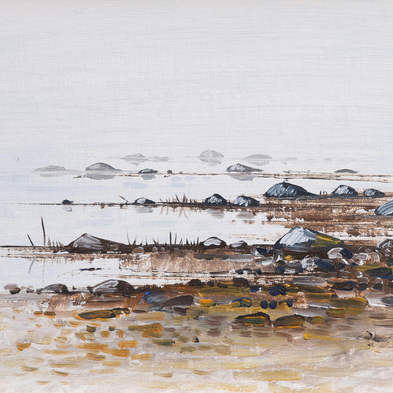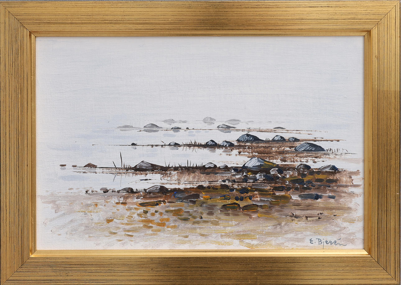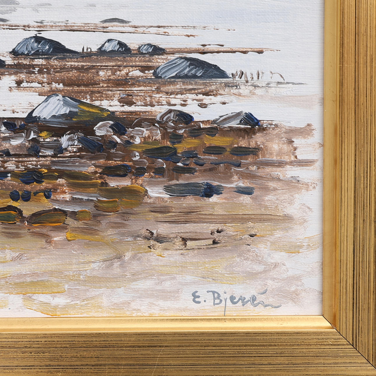 4417849. EKE BJERÉN. OIL ON PANEL, 'LOW TIDE', SIGNED.